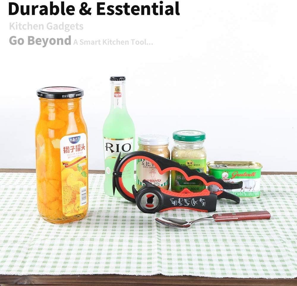 Jar Opener,Manual Can Opener,Bottle Opener Can Openers for Seniors with Arthritis,Weak Hands, 5-in-1 Multi Kitchen Tools Set for Children, Women and Seniors (Red+Black)