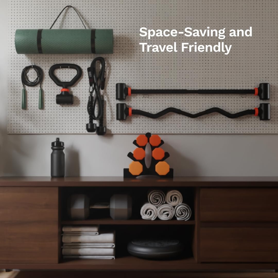 STRENGTH AND DURABILITY: Enjoy all the benefits of a full barbell set and complete kettlebell set for home gyms with limited space without compromising on strength and durability with the Hyperbell Barbell Bar and high-strength modular plastic dumbbell to barbell connector clamps tested for serious lifting.