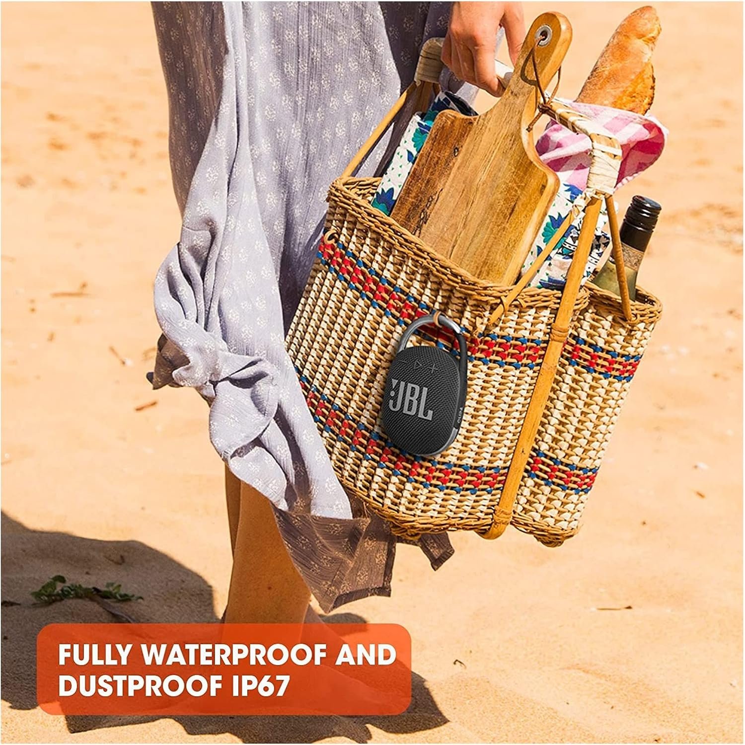 JBL Clip 4’s ultra-portable design goes great with the latest styles, and its colorful fabrics and expressive details make it look as great as it sounds