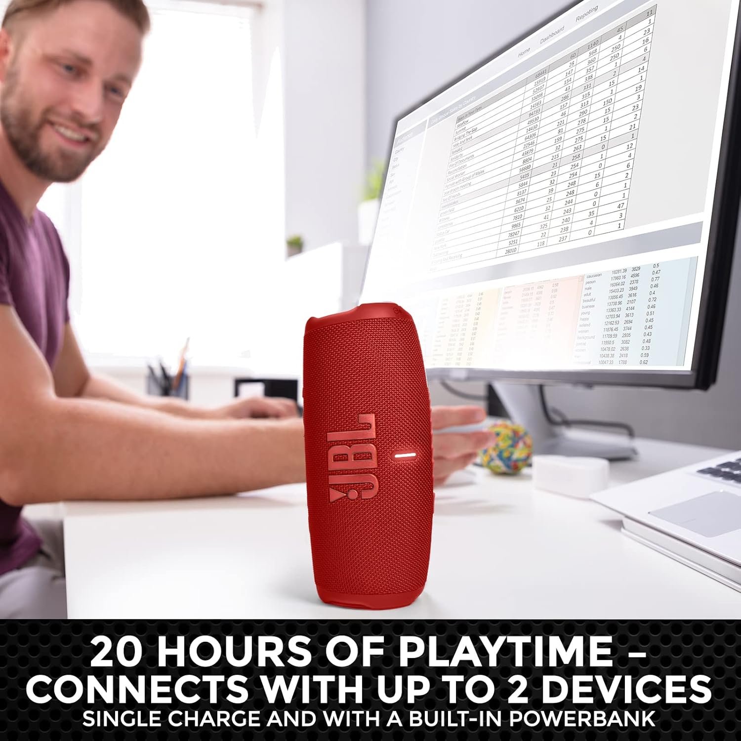 PROTECTIVE HARDSHELL TRAVEL CASE INCLUDED: Along with your new JBL Charge 5 Speaker you will also receive a durable hardshell travel speaker case with a mesh pocket for your USB cables to keep everything tidy and well protected. Strong, durable and yet lightweight, it is great for shielding the Bluetooth speaker from everyday tear and wear even when you carry it with you in your backpack or travels.