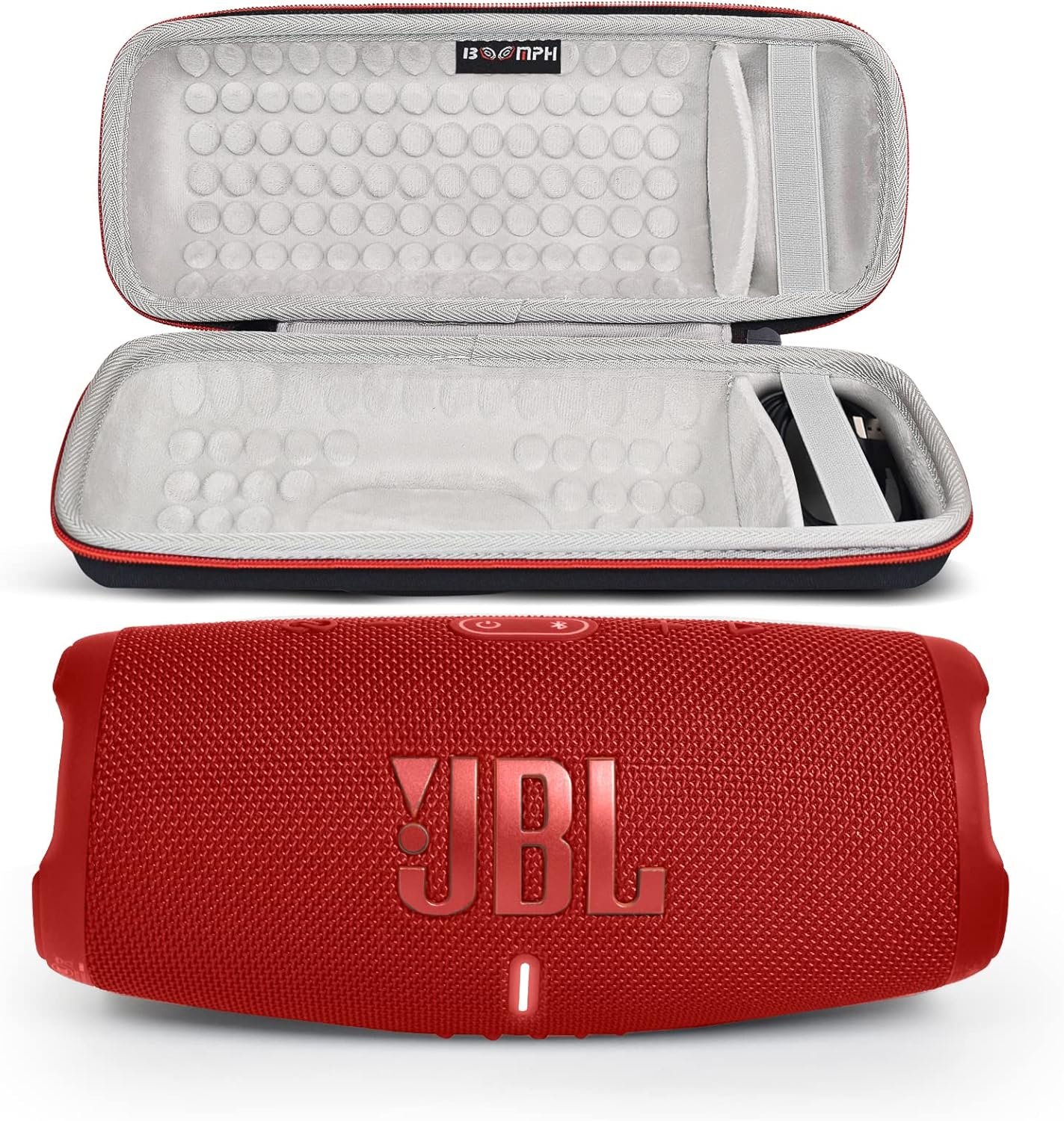 JBL Charge 5 Portable Waterproof Wireless Bluetooth Speaker Bundle with Boomph Portable Hard Carrying Protective Case – Red