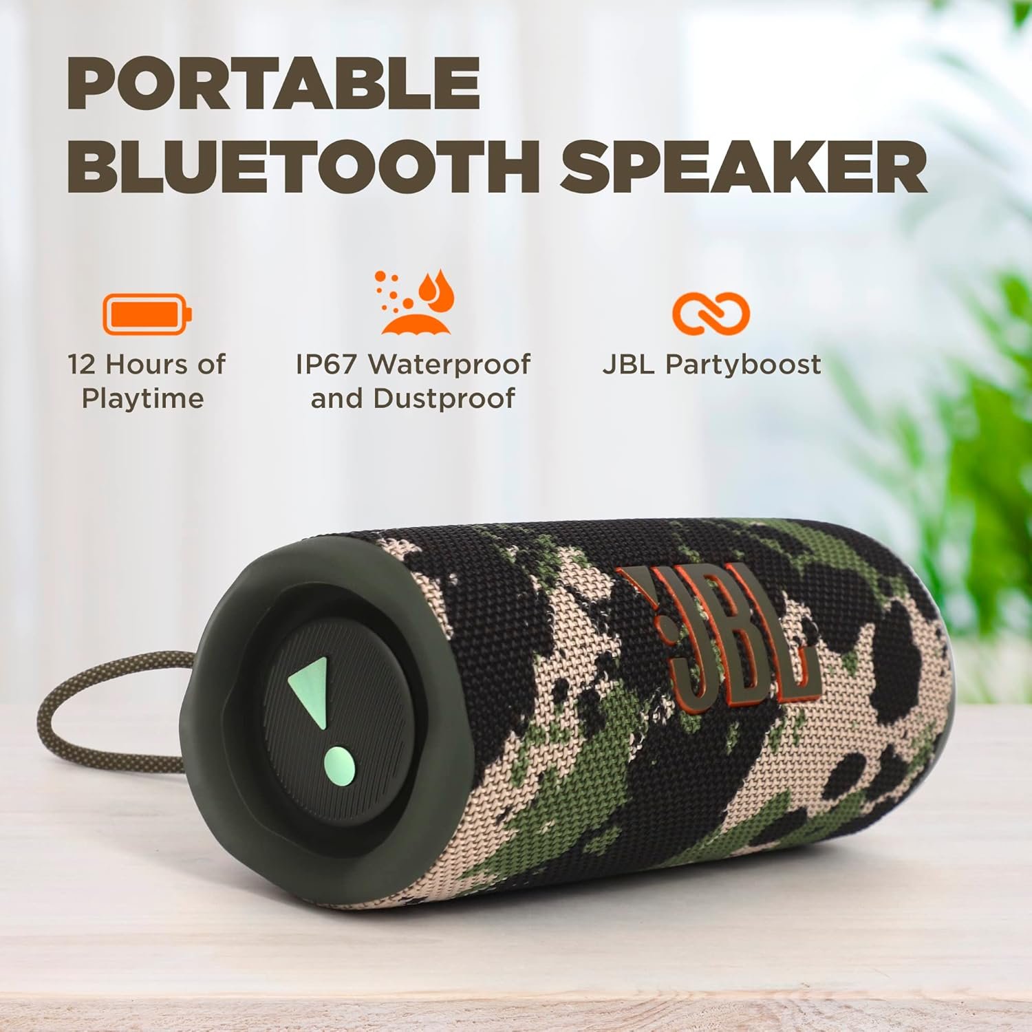 12 Hours of Playtime Don’t sweat the small stuff like charging your battery. JBL Flip 6 gives you up to 12 hours of playtime on a single charge.