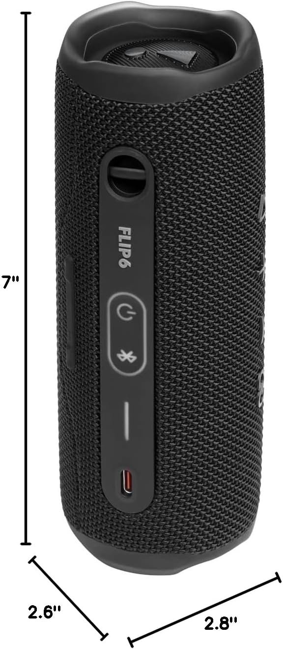 The bold JBL FLIP 6 delivers powerful JBL Original Pro Sound with exceptional clarity thanks to its 2-way speaker system consisting of an optimized racetrack-shaped driver, separate tweeter, and dual pumping bass radiators. This big-sounding, yet easy-to-carry speaker is waterproof and dustproof, so you can take it anywhere in any weather. And with 12 hours of battery life, you can party ’til the sun goes down—or comes up—wherever the music moves you.