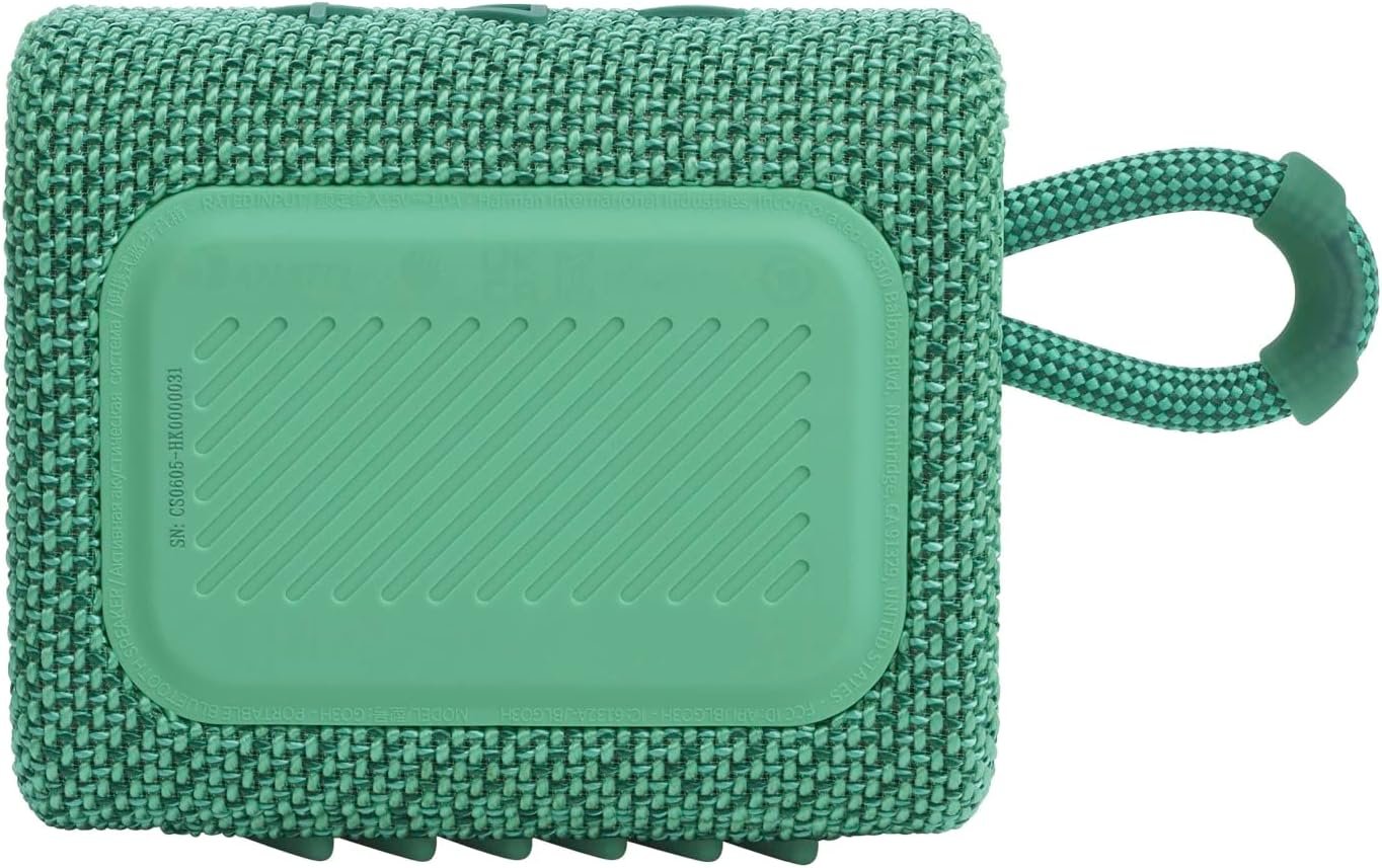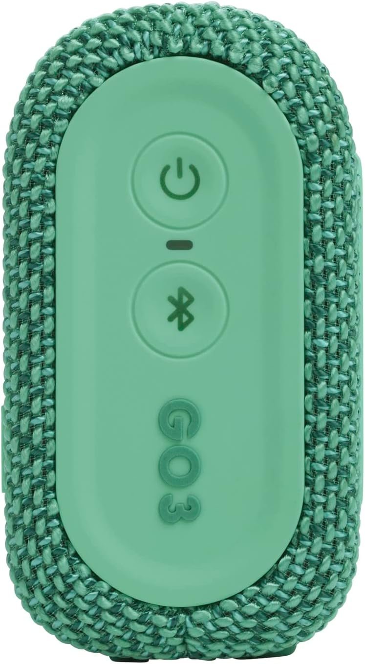 New innovative, eco-friendly design—same rich JBL Original Pro Sound performance. Created using up to 90% PCR (post-consumer recycled) plastic with 100% recycled fabric on the speaker grille, the design of the JBL Go 3 Eco significantly reduces the amount of virgin plastic being used while reducing the overall carbon footprint of the product. It also comes in sustainable packaging made from FSC – certified paper printed with soy ink.