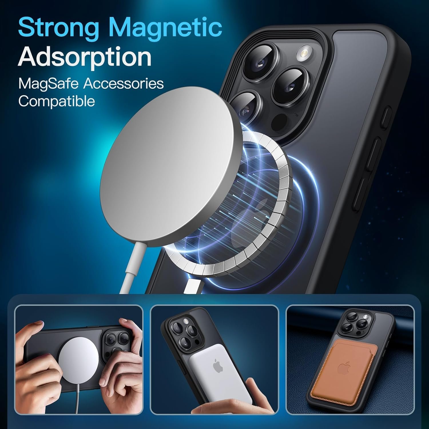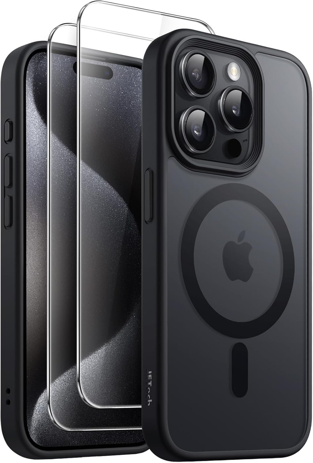 JETech 3 in 1 Magnetic Case for iPhone 15 Pro Max 6.7-Inch with 2 Pack Tempered Glass Screen Protectors, Compatible with MagSafe, Translucent Matte Back Shockproof Phone Cover