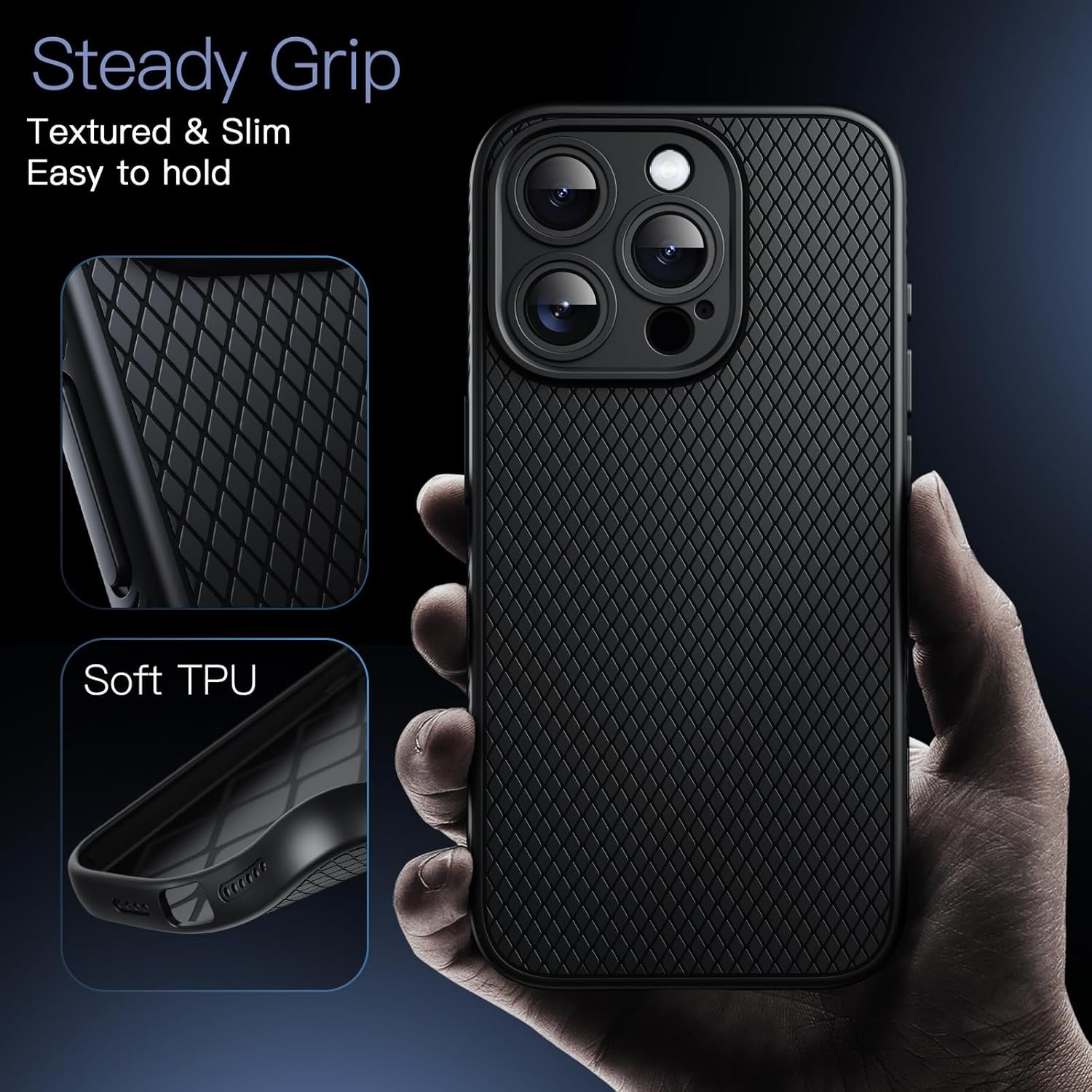 JETech Grip Case for iPhone 15 Pro Max 6.7-Inch, Soft TPU Slim Fit Protective Phone Cover with Camera Lens Full Protection, Shockproof