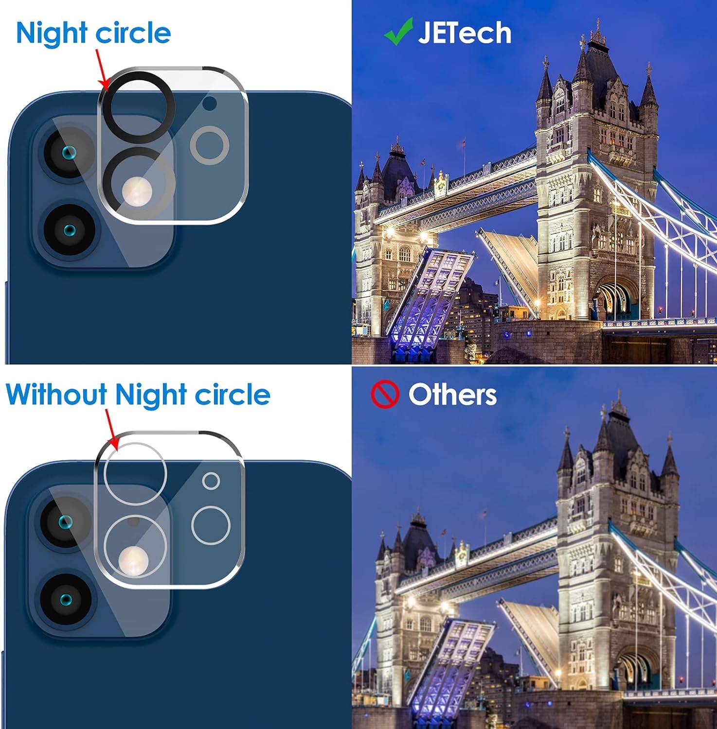 [User-friendly] The camera lens protectors DO NOT affect the flash function in low light conditions. Ensure the original resolution of your pictures and videos. Easy to install