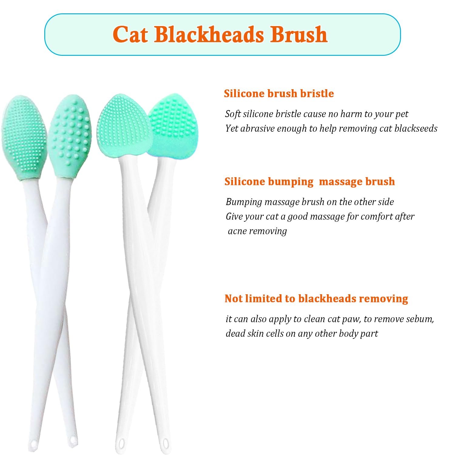 Great Value Cat Chin Cleaning Package—Package comes with four cat acne brushes with two shape design, so you can always choose the one fitting for you the most, and always have spare ones to back you up. We offer 100% SATISFACTION, if you have any question, contact us, we will get a solution for you quite shortly