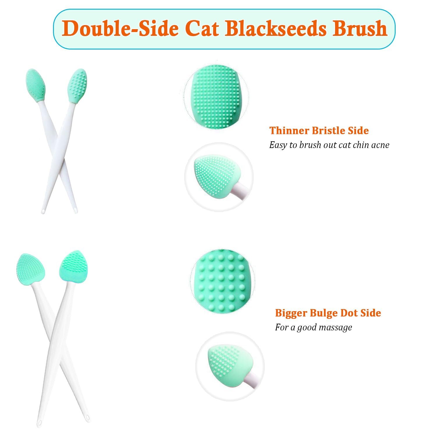 Two-side Cat Black Seed Remover–The thinner bristle side for deep clean to remove cat black seeds. The bigger bulge dot side for a good massage