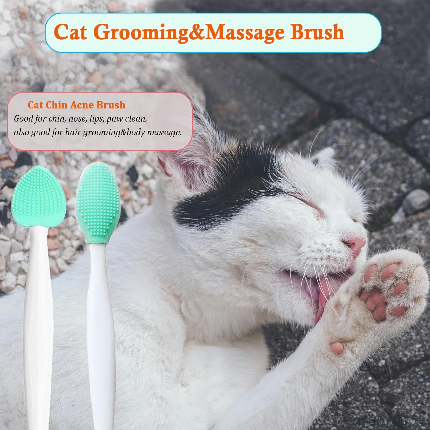 User Friendly Cat Chin Brushes–Slim stream line brush handle, comfortable to grip and maneuver. Hanging hole for after use storage. Easy to clean, just rinse under running water, then keep it in dry place