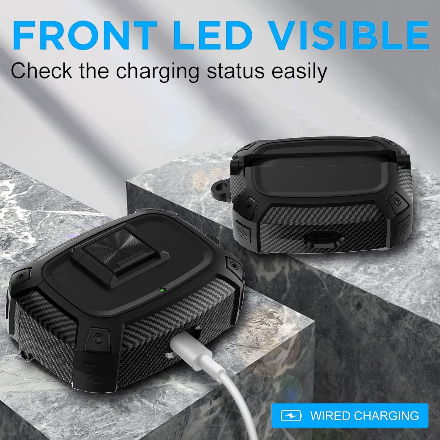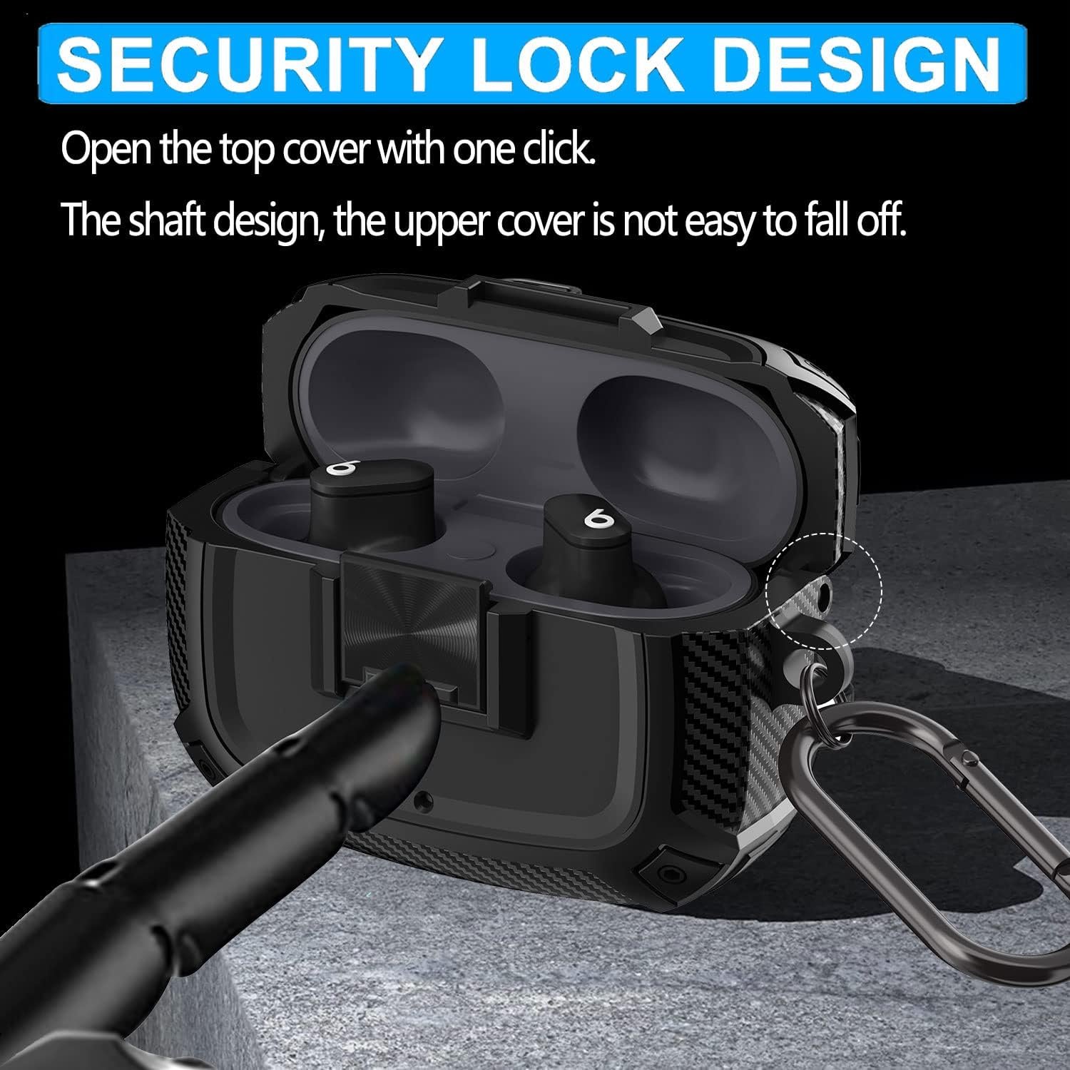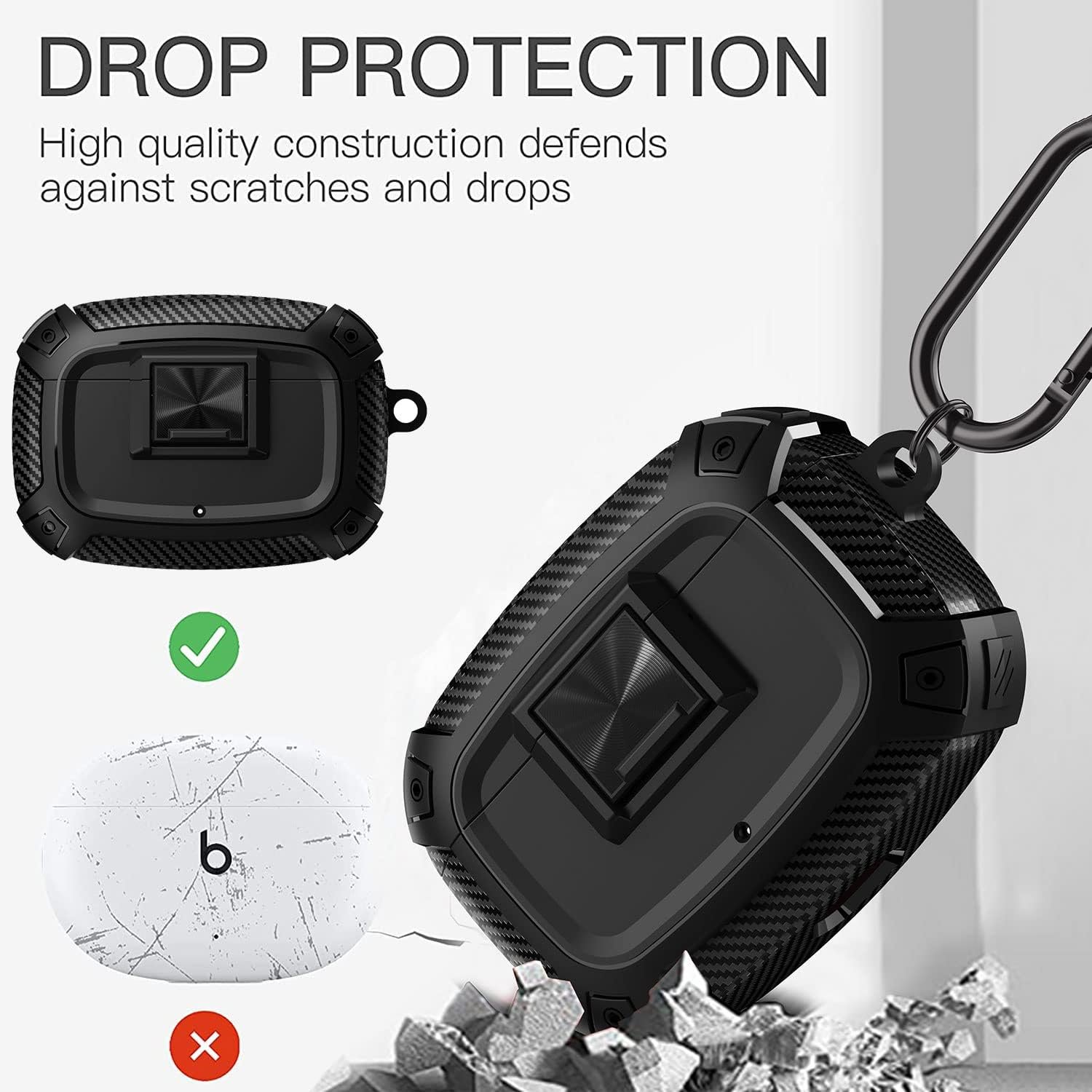 JIML [Upgrade Secure Lock] Compatible for Beats Studio Buds (2021) / Beats Studio Buds+ (2023) Case TPU Military Shell Protective Cover Skin Shock-Absorbing with Keychain and Lanyard (Black)