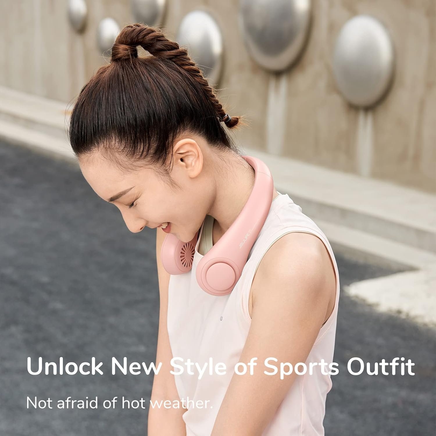 JISULIFE Neck Fan, Personal Wearable Fan, Portable Bladeless Fan, 3 Speeds Rechargeable, Battery Operated Neck Fan for Men Women 2024 Version-Pink