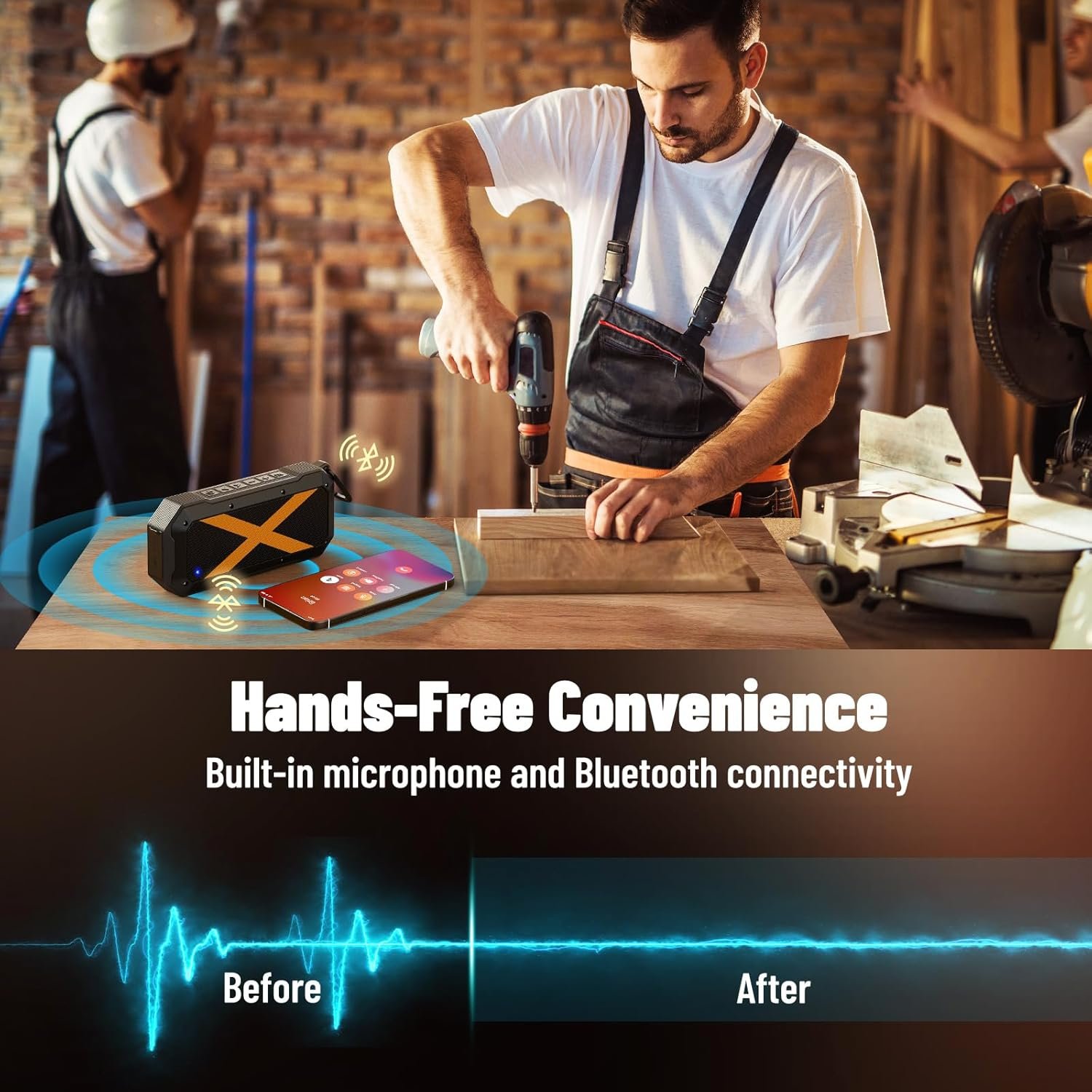 5. Seamless Connectivity. Wireless Jobsite speaker’s Bluetooth 5.4 technology provides a stable connection with a wide range, allowing you to move freely without worrying about signal loss. You can also access Siri or Google Assistant through the speaker for voice-controlled commands, making it easy to adjust volume, skip tracks, or answer calls.