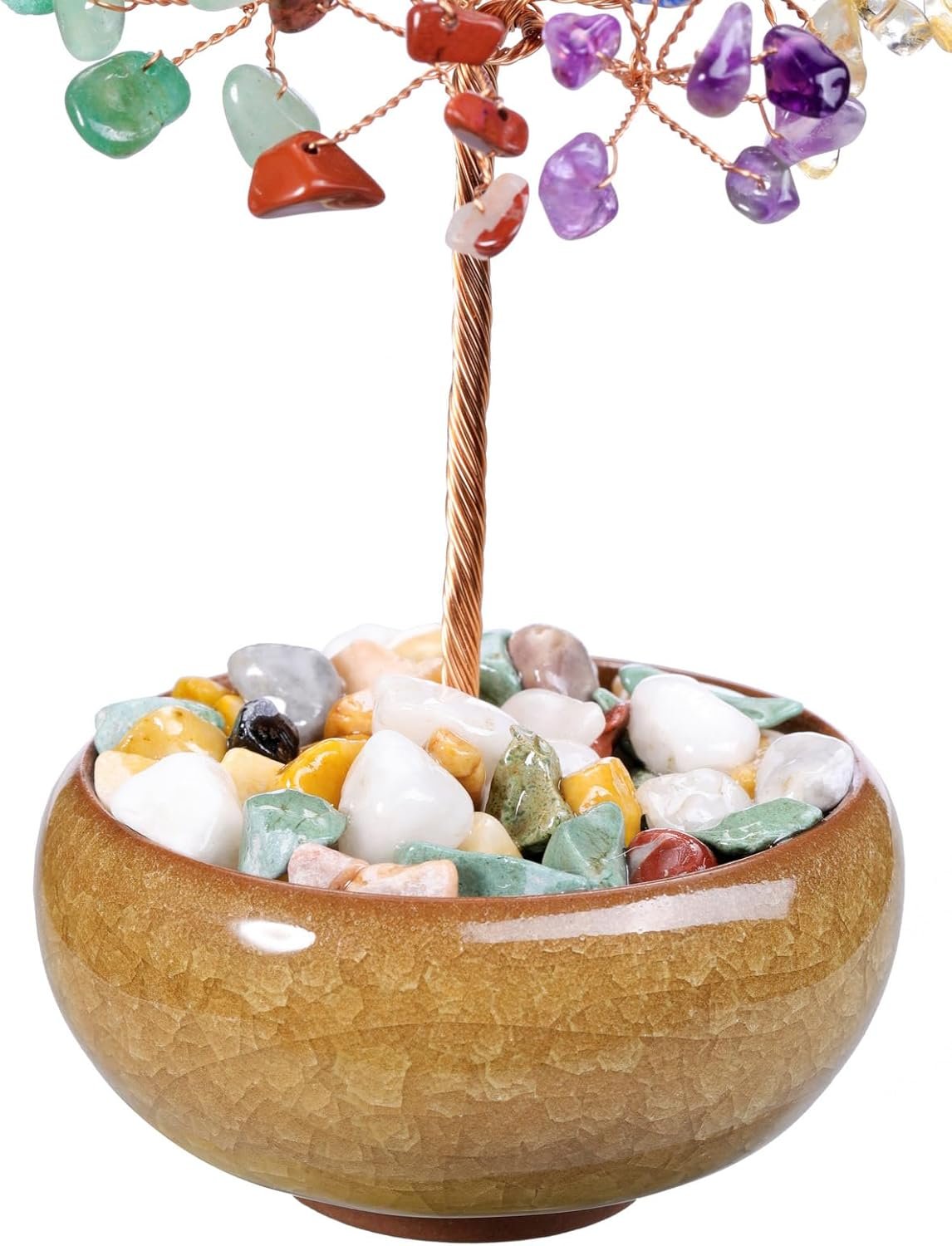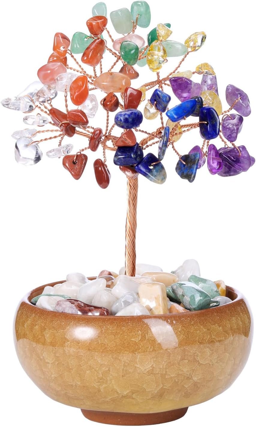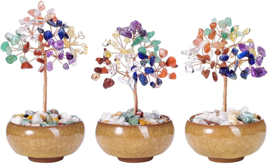 Crystal Tree Chip Tumbled Gemstone Feng Shui Money Tree Life with Ceramic Base