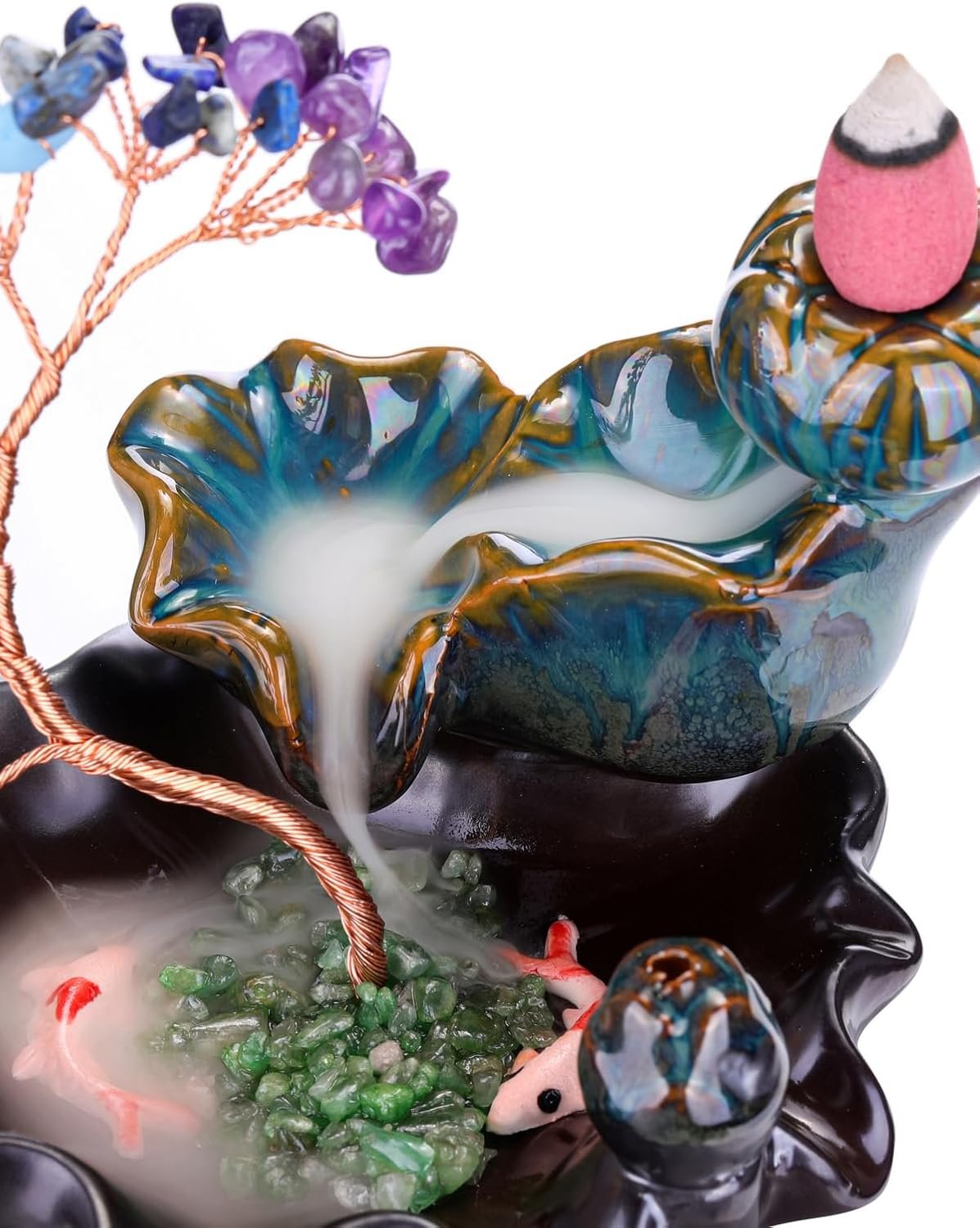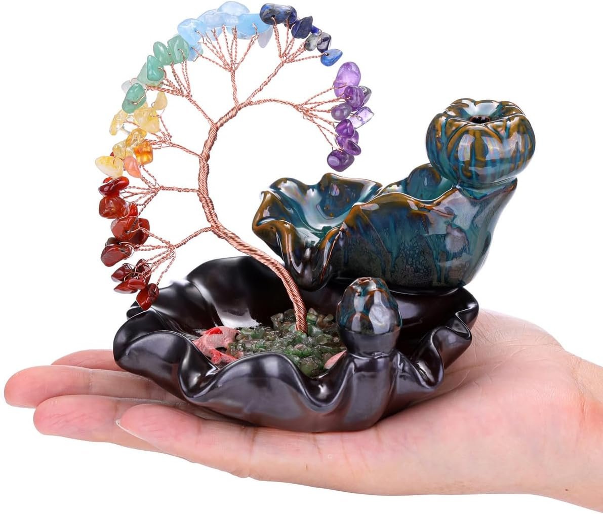 Gemstone money tree incense holder, healing and decorative. Waterfall Incense Burner can be used with incense cones, creates smoke that slowly flows down like a waterfall, and is full of mystery.