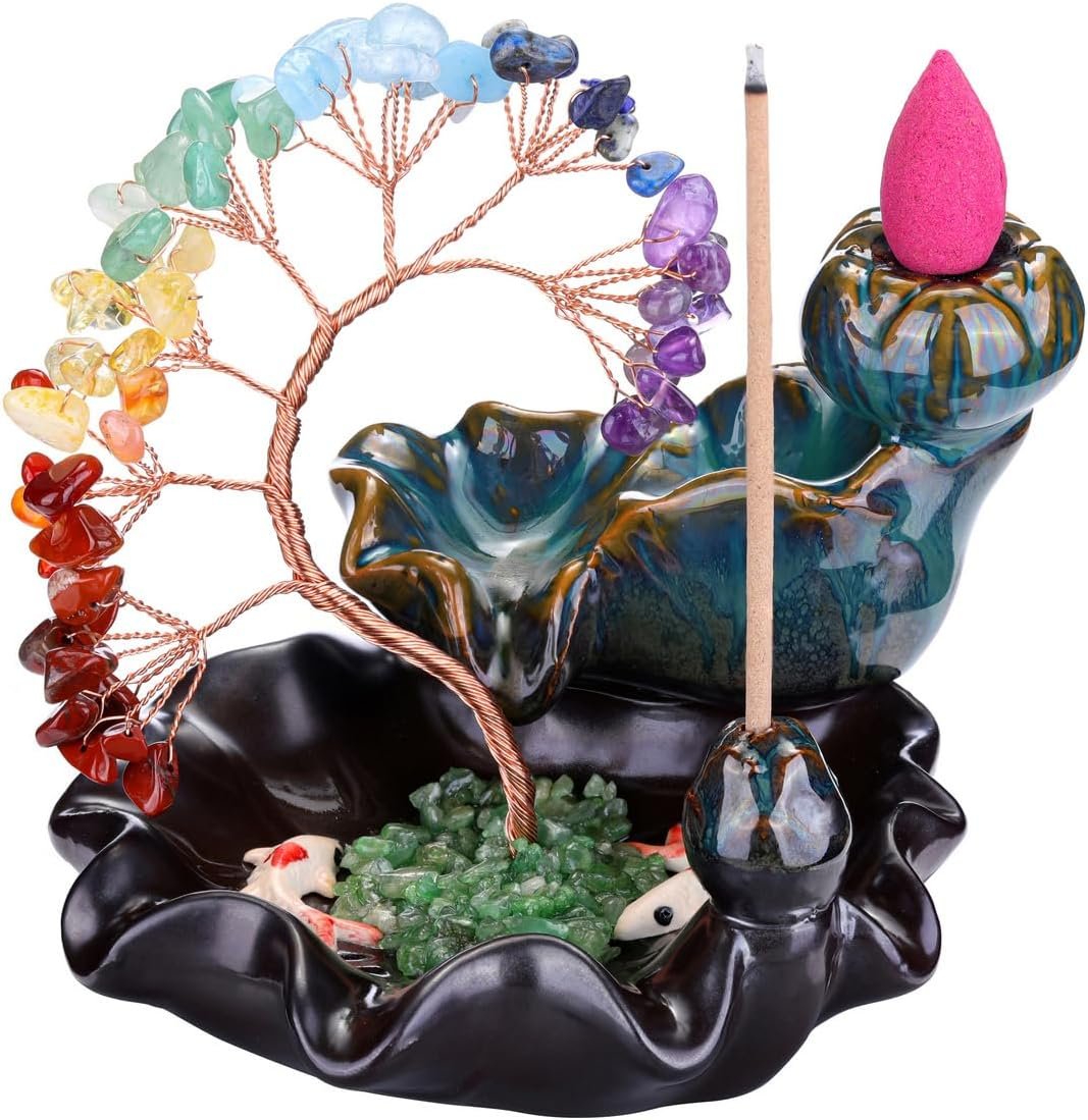 Jovivi Crystal Tree Incense Waterfall Burner Backflow Incense Holder