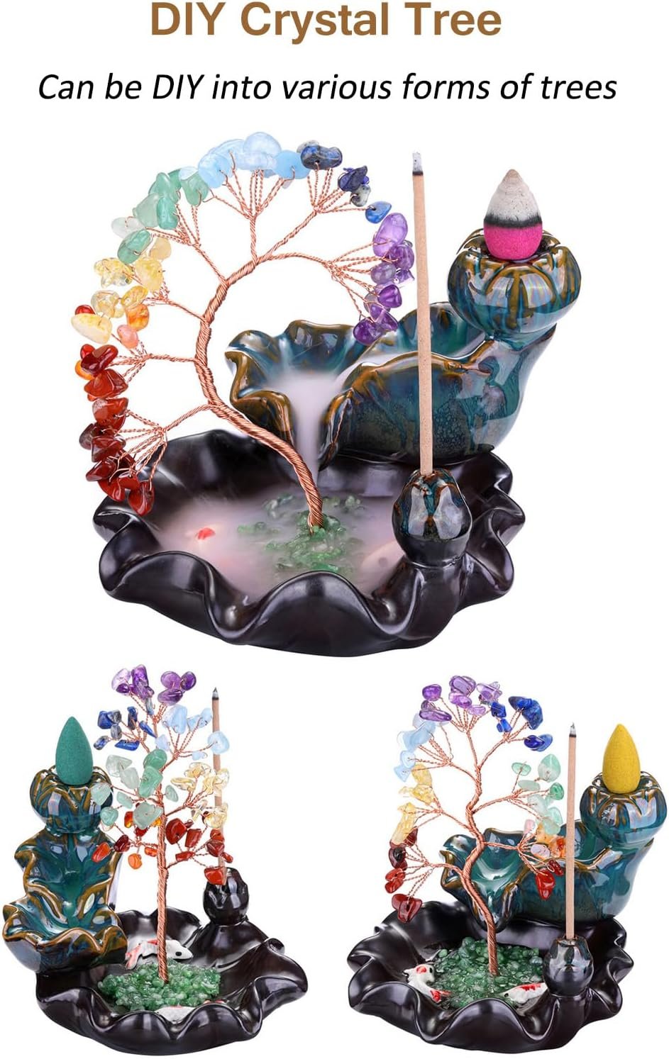 【Multi-functional Waterfall Incense Holder】Gemstone money tree incense holder, healing and decorative. Waterfall Incense Burner can be used with incense cones, creates smoke that slowly flows down like a waterfall, and is full of mystery. It can hold a variety of incense to create a peaceful corner in your home, can help the human body relax and enter the meditation state more easily. It is suitable for yoga, meditation, healing, and peace of mind.