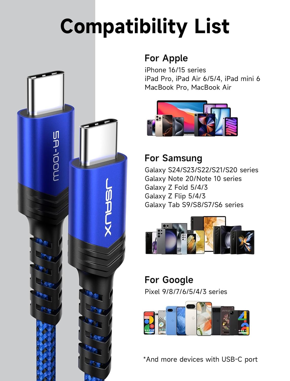 ![JSAUX 3-Pack USB C to USB C Cable 100W [10ft/6.6ft/3.3ft] Compatible for iPhone 16 15 Pro Max Plus, Samsung Galaxy S24 S23 S22, CarPlay, iPad Pro, Type C to Type C Charger Cable Fast Charging -Blue JSAUX 3-Pack USB C to USB C Cable 100W [10ft/6.6ft/3.3ft] Compatible for iPhone 16 15 Pro Max Plus, Samsung Galaxy S24 S23 S22, CarPlay, iPad Pro, Type C to Type C Charger Cable Fast Charging -Blue](https://i3.wp.com/m.media-amazon.com/images/I/71B2dMc28pL._SL1500_.jpg?ssl=1)