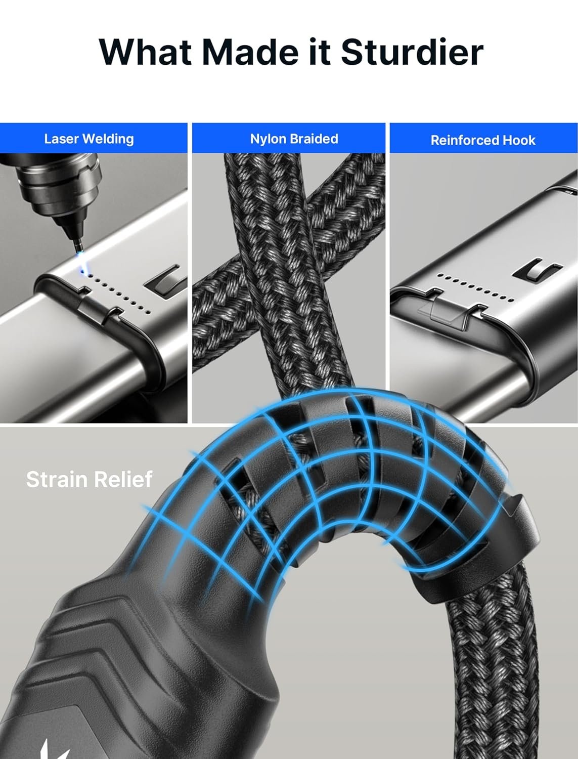 Enhanced Durability: Strong fiber, the most flexible, powerful and durable material, makes tensile force increased by 200%. Can bear 10000+ bending test. Premium Aluminum housing makes the cable more durable,nylon braided type c cable adds additional durability and tangle free.