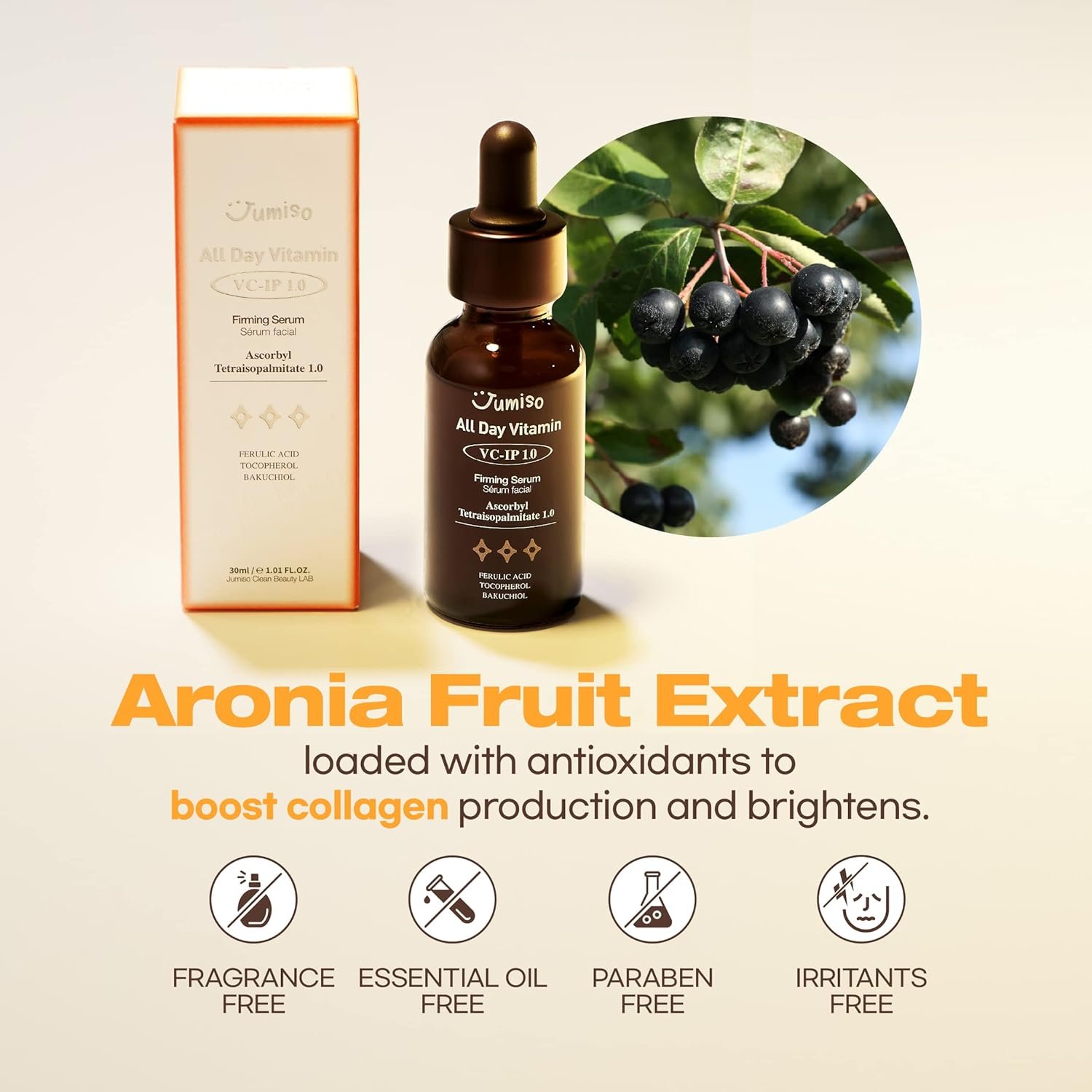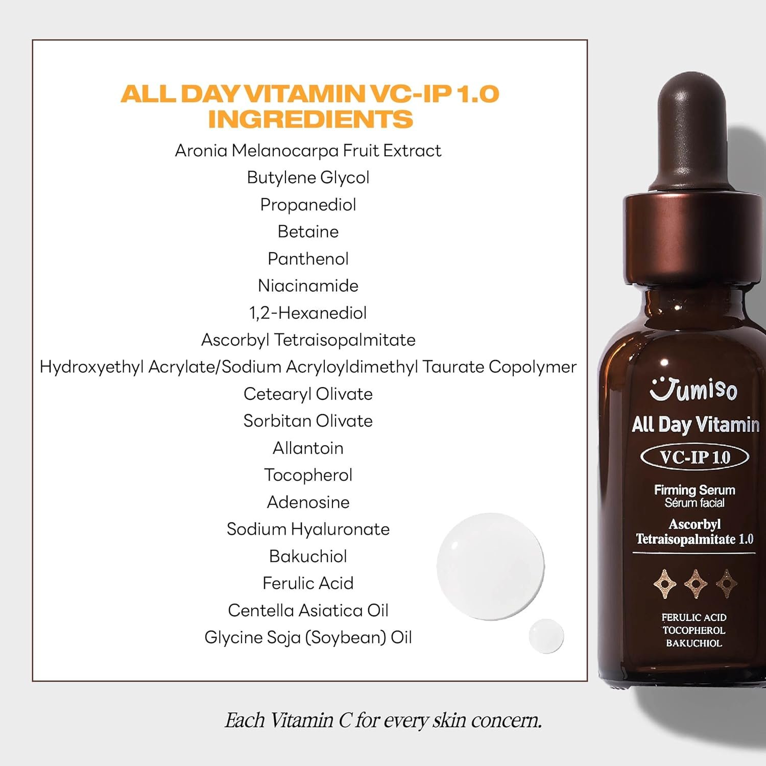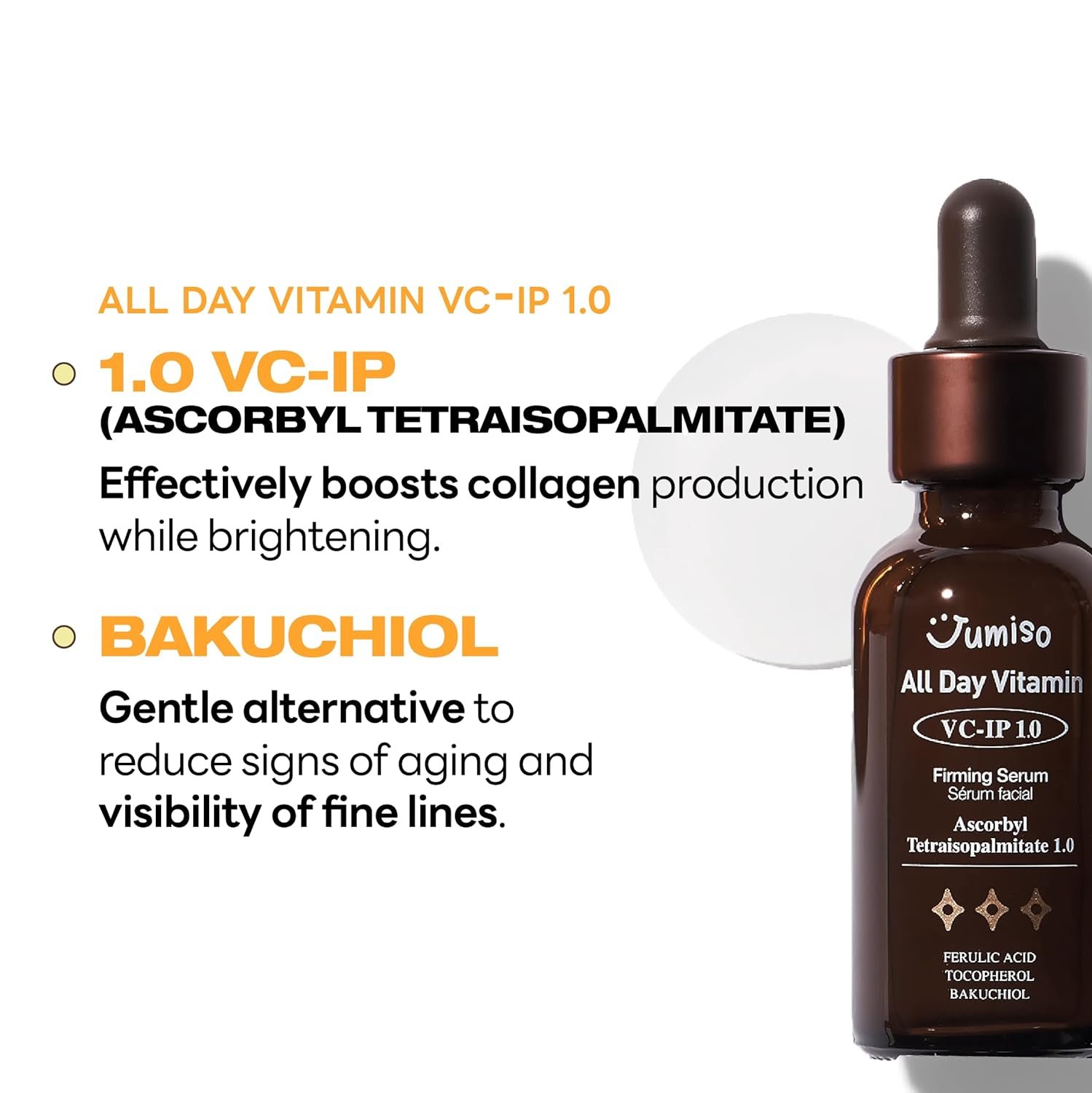 ANTI-AGING, FADES DARK SPOTS FIRMING SERUM – Ascorbyl Tetraisopalmitate(Vitamin C) with Bakuchiol clinically tested to boost collagen production for firmer, brighter skin.