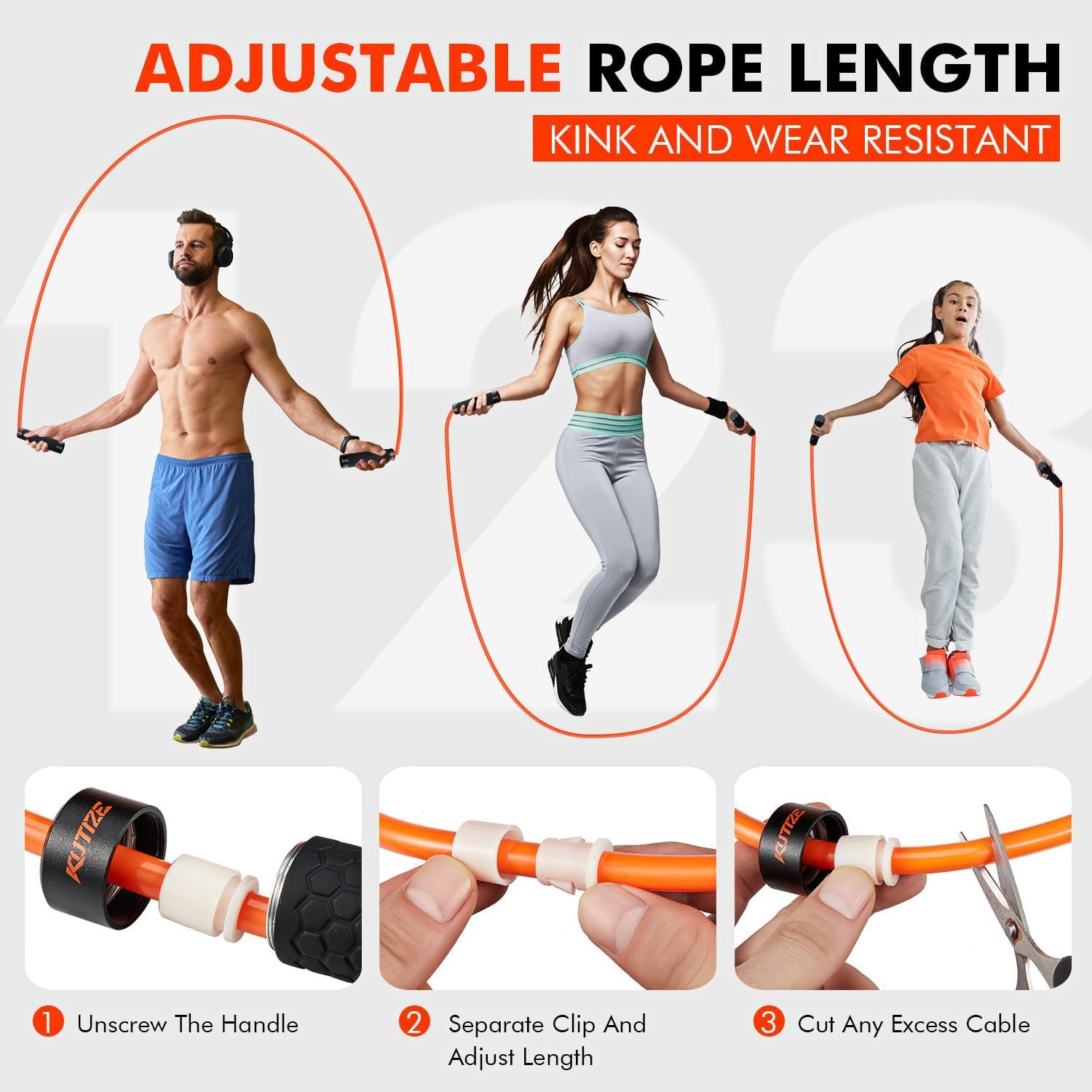 Adjustable Length Jump Rope: The jump rope for men is equipped with an adjustable length rope body, which can easily change the length of the rope to adapt to different heights or skipping skill levels of people. This unique design ensures the versatility of skipping rope, allowing both kids and adults to find a suitable rope length, thereby improving the comfort and efficiency of jump rope for men.