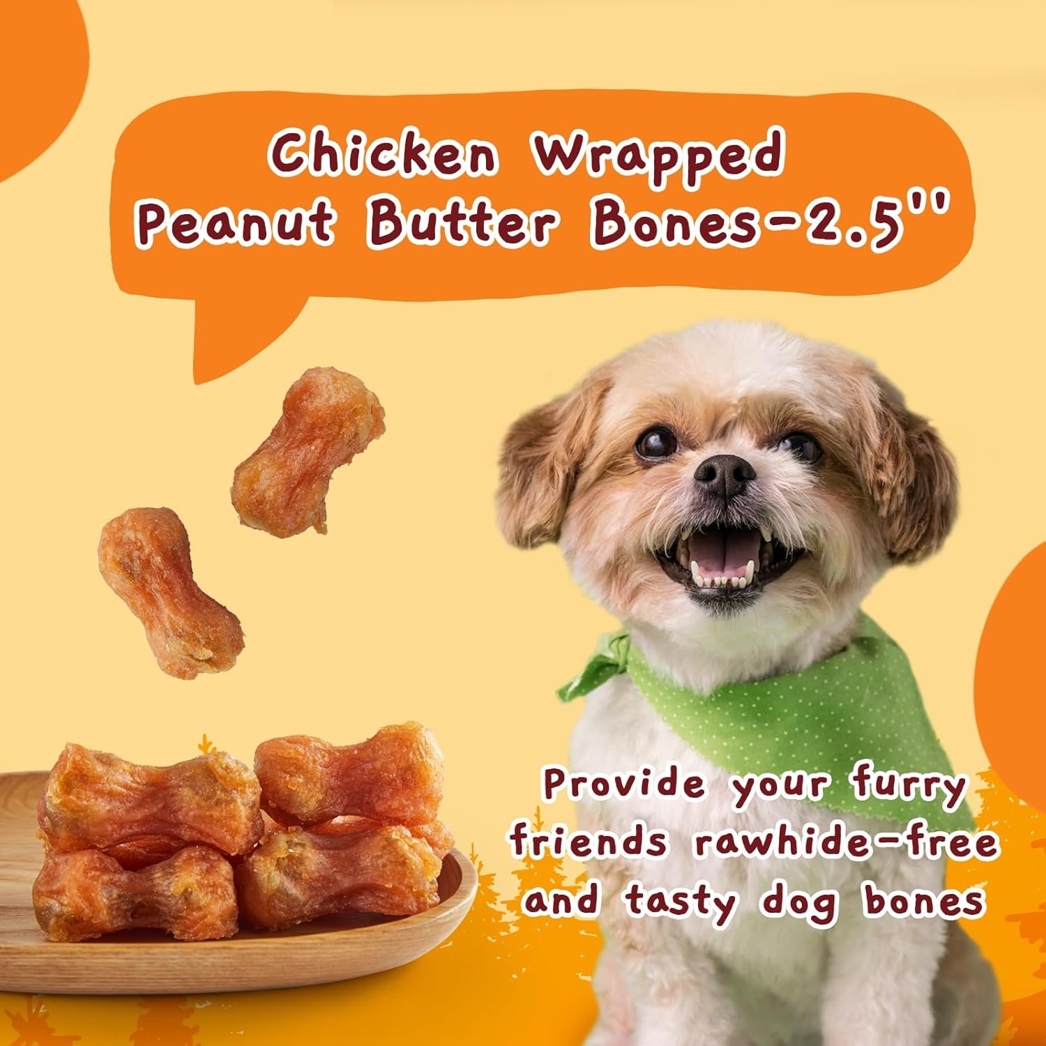 NUTRITIOUS & TASTY DOG BONES: Chicken wrapped peanut butter bones are high in protein; Added cranberry flavor enriched vitamin C; Collagen is helpful to maintain strong bones to your dogs