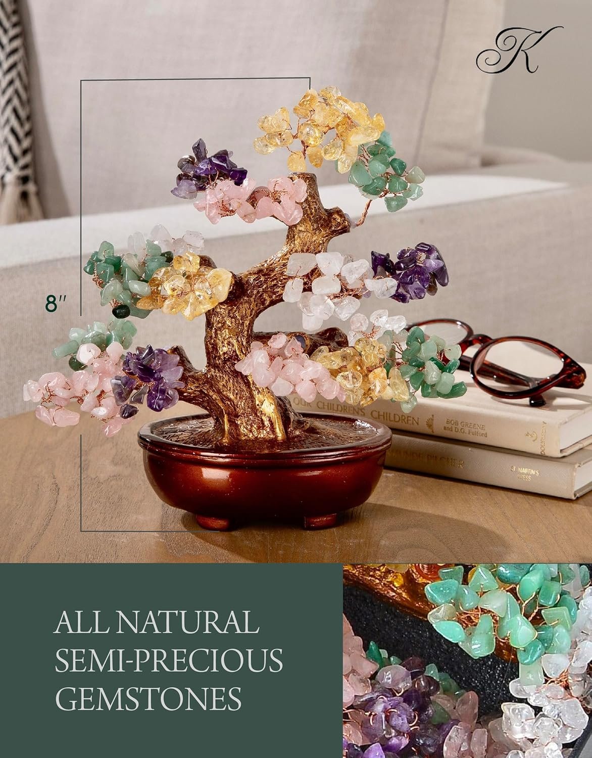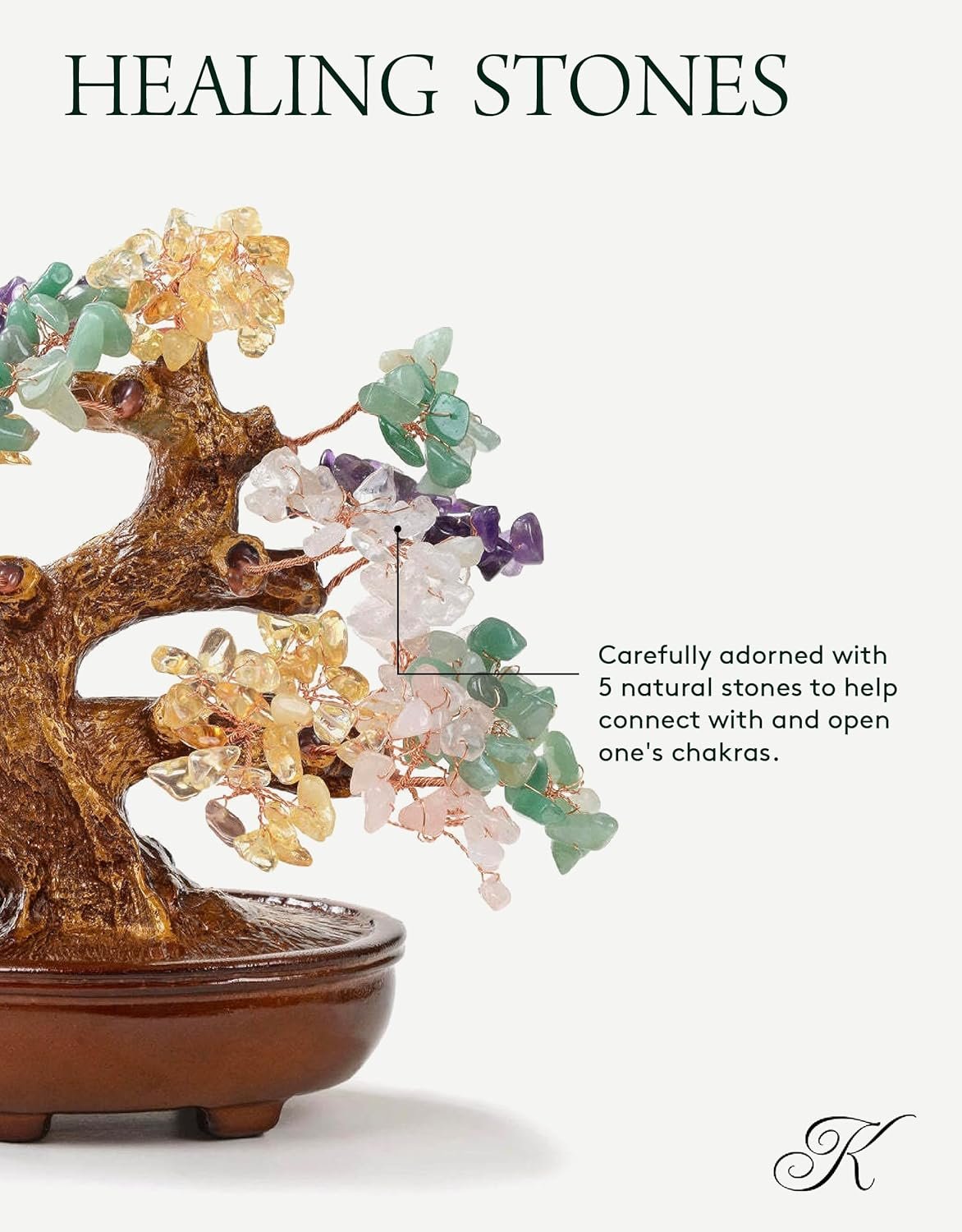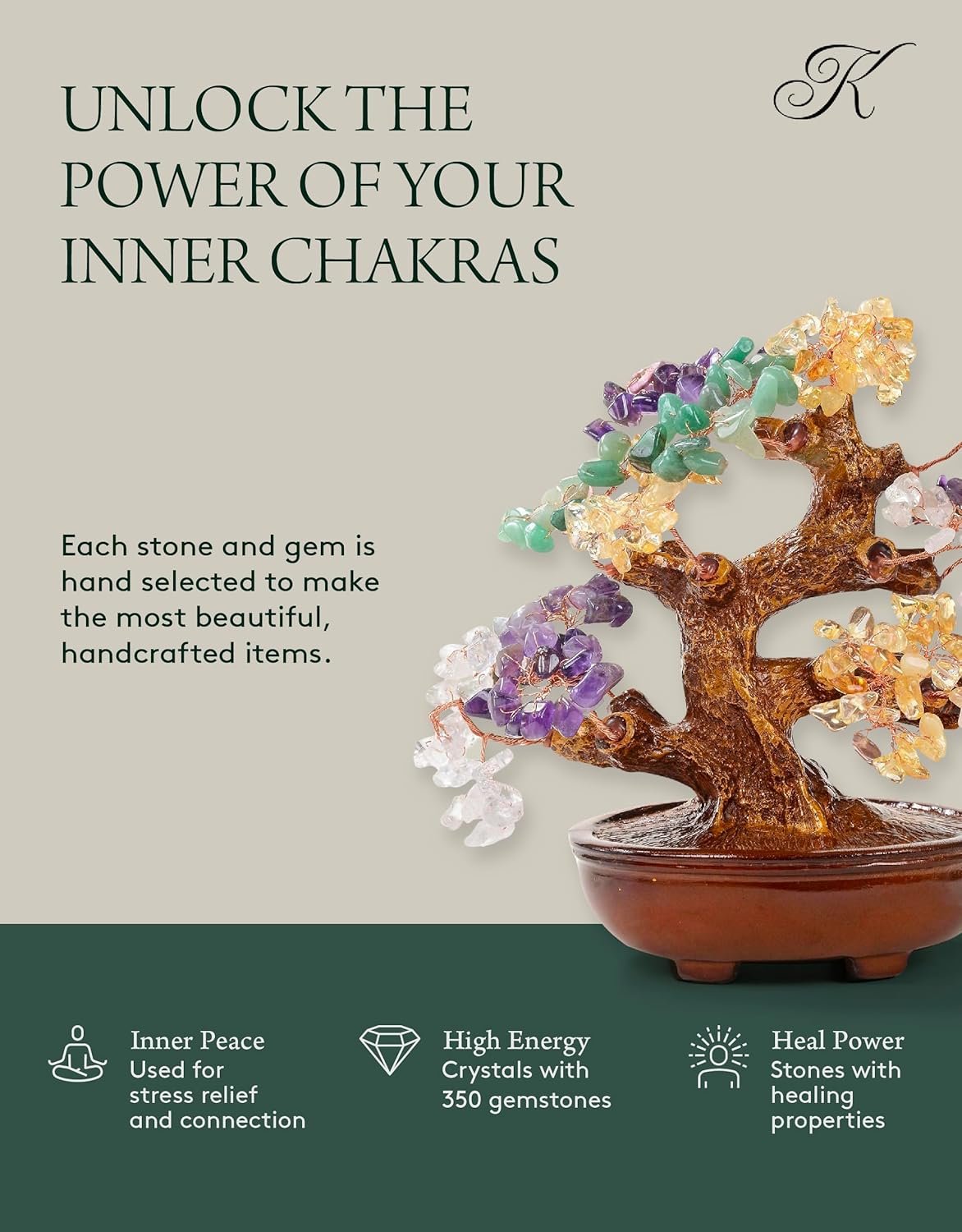 This Gemstone Tree is Carefully Adorned with Amethyst, Aventurine, Quartz, Rose Quartz, and Citrine Chakra Stones to Help Connect with and Open your Chakras allowing for Free Flowing Energy. Discover the Power of the Tree of Life Gemstone Tree Today!