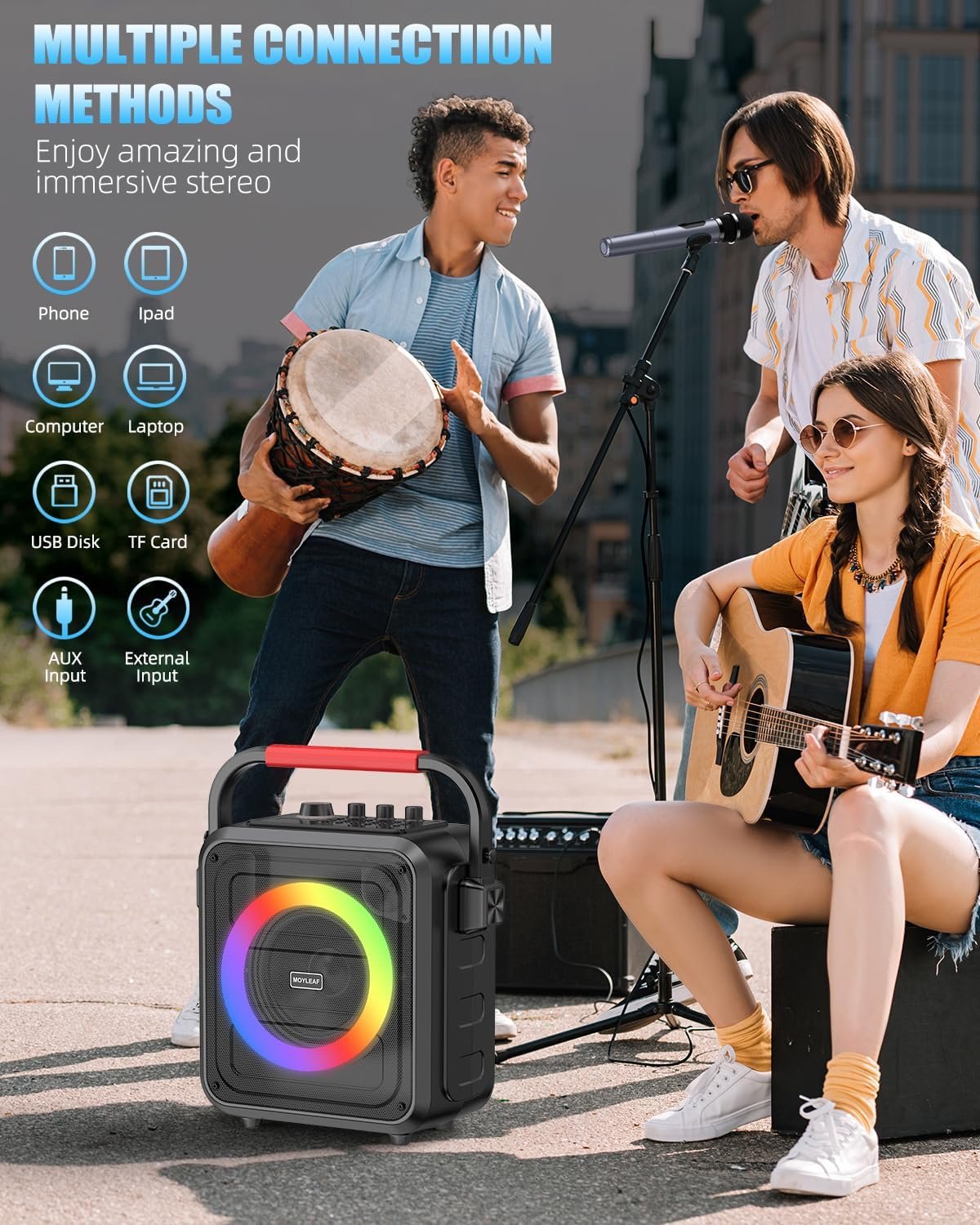 【Desirable Option】The MOYLEAF speaker with microphone is equipped with a upgraded audio driver, providing clearer and more balanced sound quality, as well as 360 ° stereo surround sound effect. Immerse yourself in more powerful and shocking music. It is an ideal choice for beach parties, family gatherings, outdoor live streaming, and other occasions.