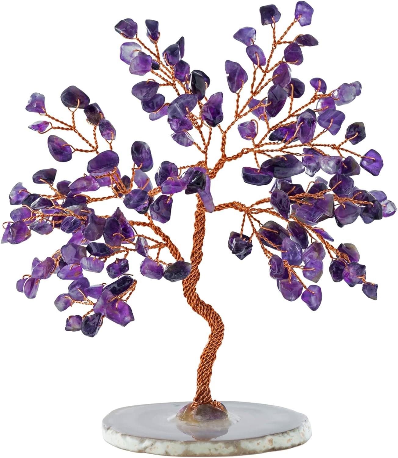 SIZING & MATERIALS – Available in 6″, 8″, and 10″ size trees, with genuine gemstones hand-wrapped with copper wire on an agate base to manifest your dreams for unconditional love, friendship, and romance