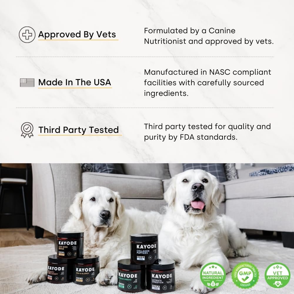 Expertly Made In USA – by a team of experts in canine nutrition and science. Not only is it a vet-approved formula, these allergy dog chews are made without heat retaining maximum nutritional value.
