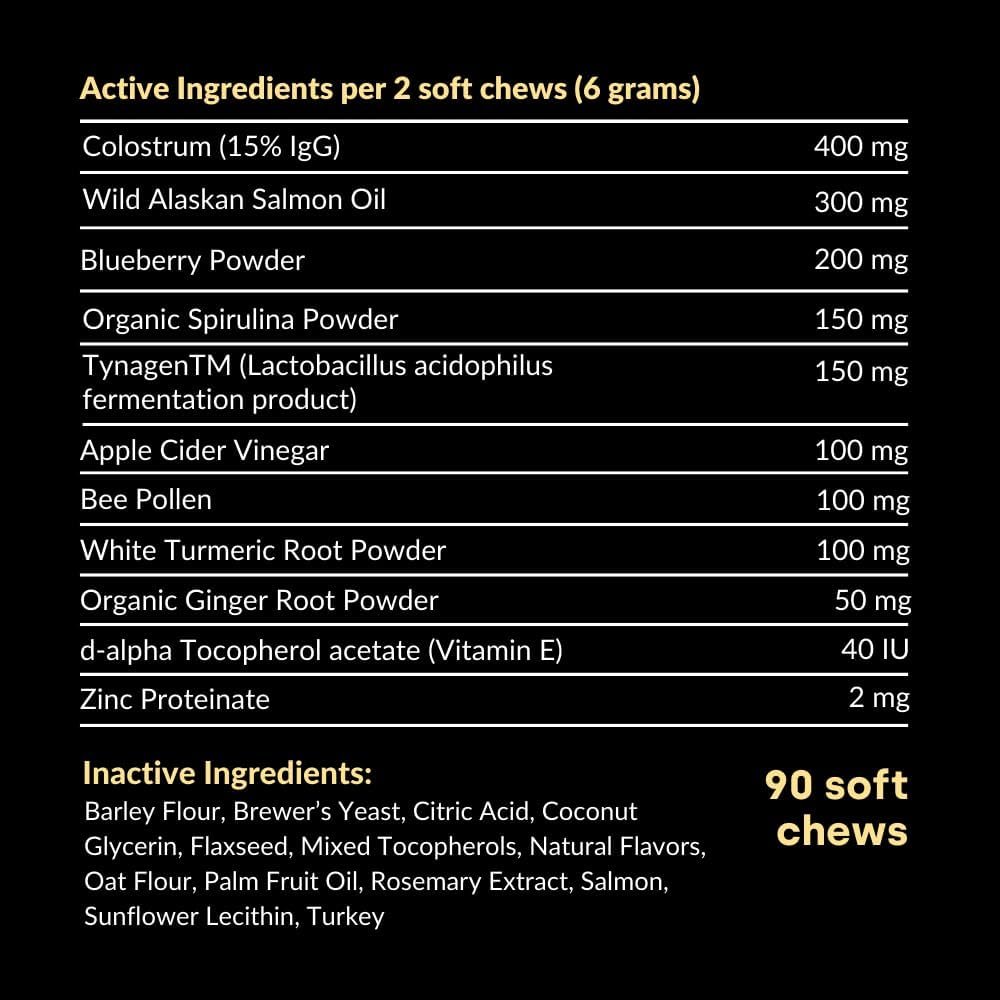 Science backed Itching Relief For Dogs – When it comes ot your dog’s itchy skin, more nutrients are better. Led with colostrum and spirulina, two powerful nutrients for histamine response.