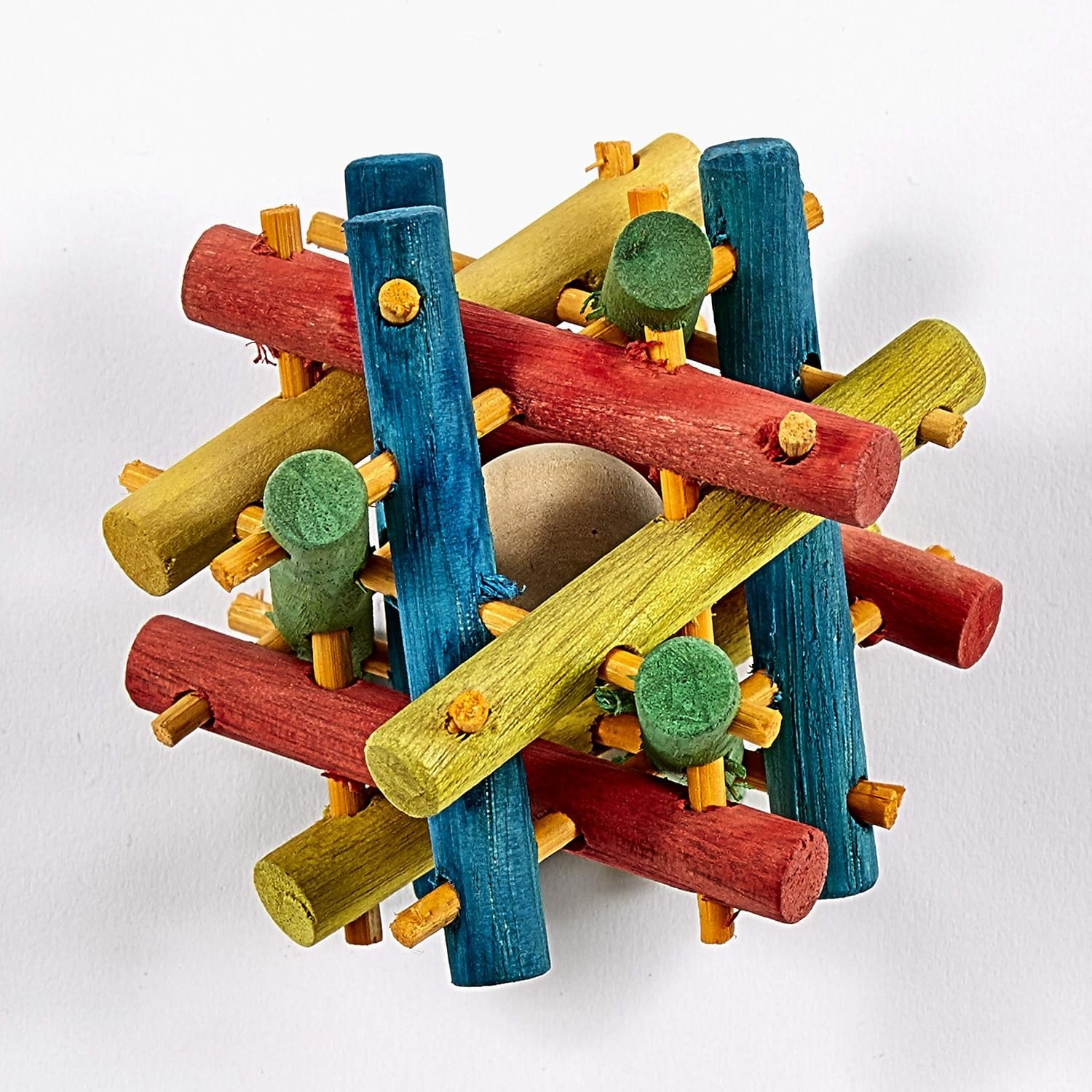 Kaytee Mini Nut Knot Nibbler is a colorful play toy for small animals that is safe to chew. Your pet will have hours of fun chewing and gnawing to get to the wooden ball that is trapped in the center. 100-Percent natural wood has safe vegetable dye coloring.