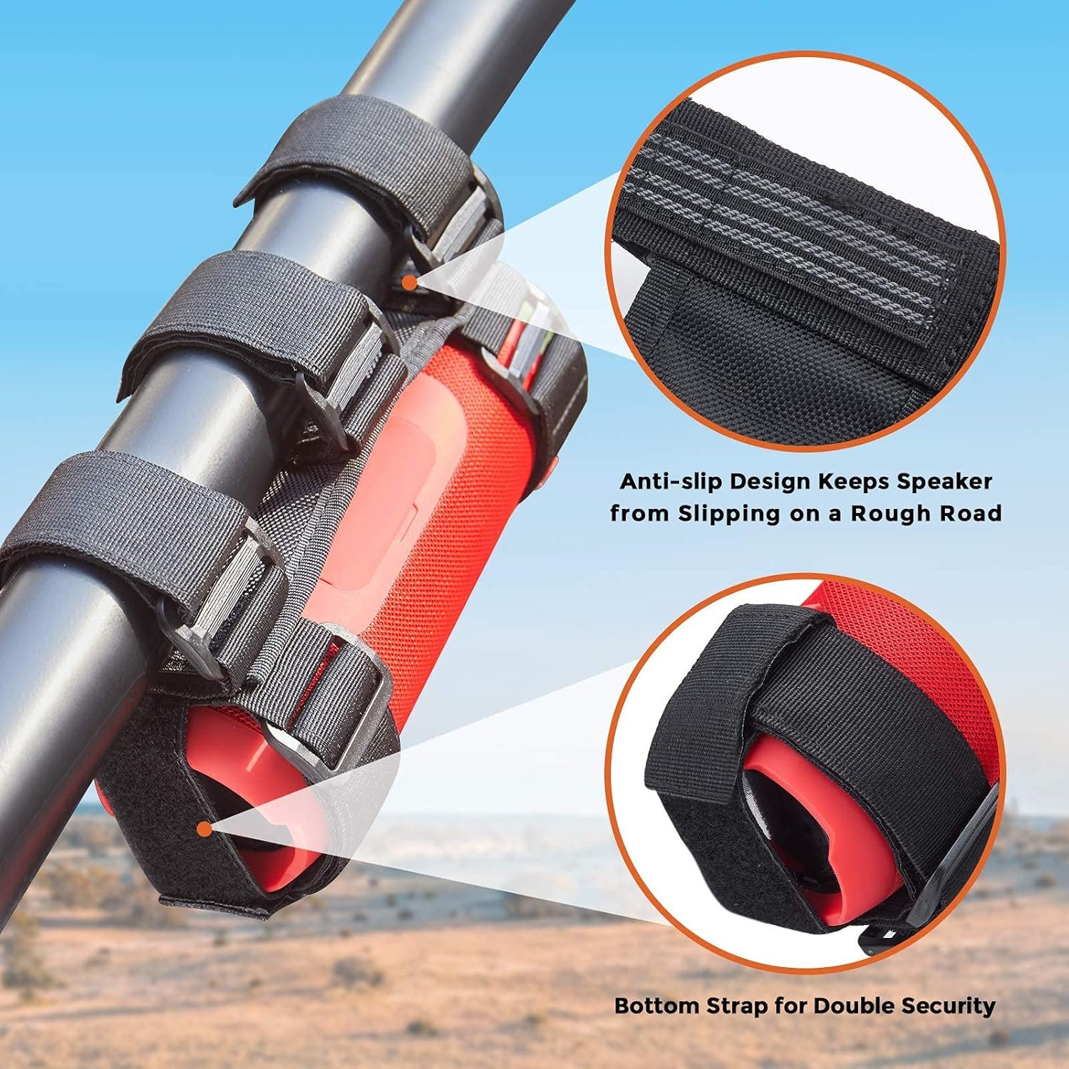 Easier Controlling: 2-strap style of Kemimoto roll bar speaker mount will not block the control button like other one strap style mount, but expose it instead, which let you operate the portable speaker much easier