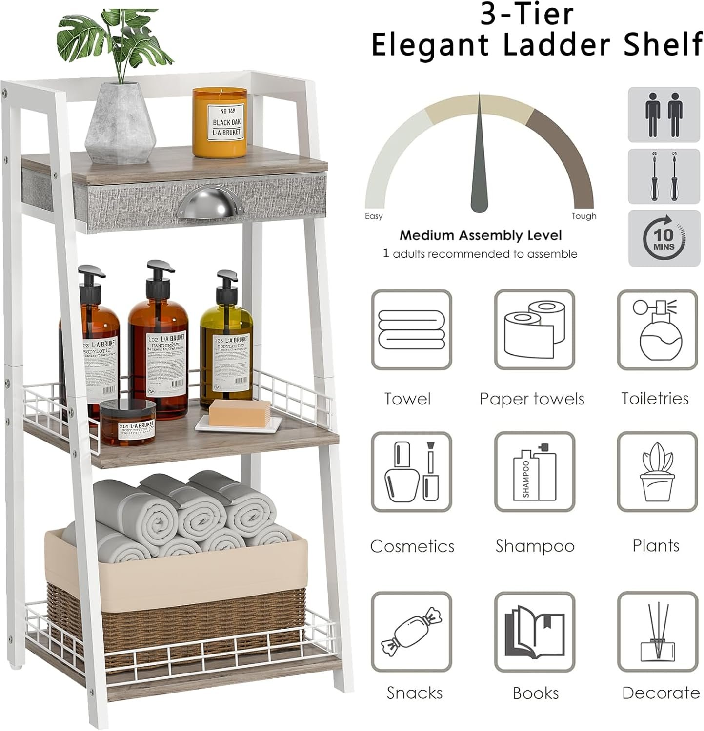 Bathroom Ladder Shelf with Drawer, great for bathroom living room bedroom office entryways hallways balcony