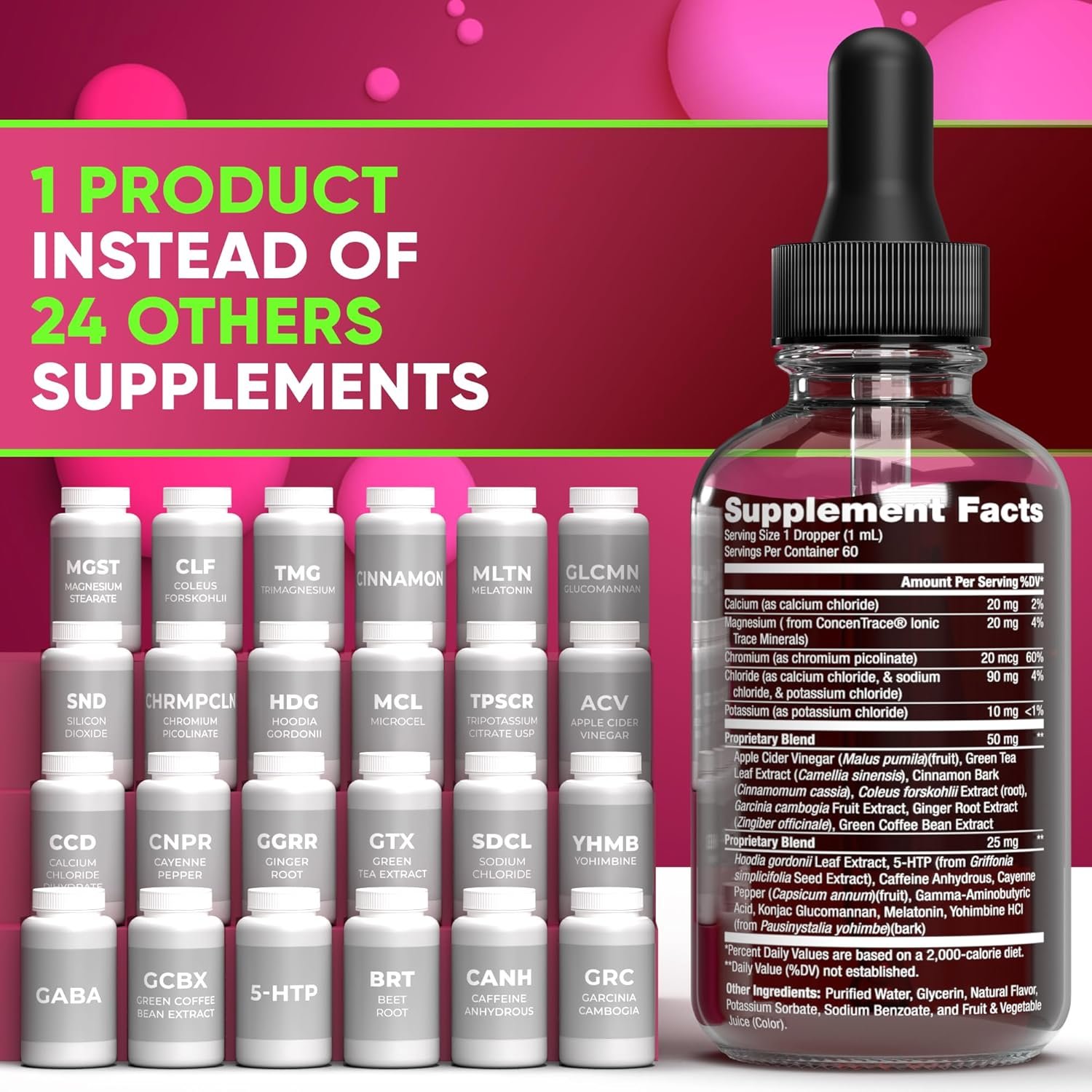 Natural Weight Loss – Our drops are a potent blend of ingredients like apple cider, green coffee bean extract, cinnamon, and cayenne pepper. This formula works as a metabolism booster, helping to burn fat. The inclusion of electrolytes helps normalize vital levels in the body. This product effectively suppresses food cravings, making it easier to stick to weight loss diet and achieve weight loss goals.