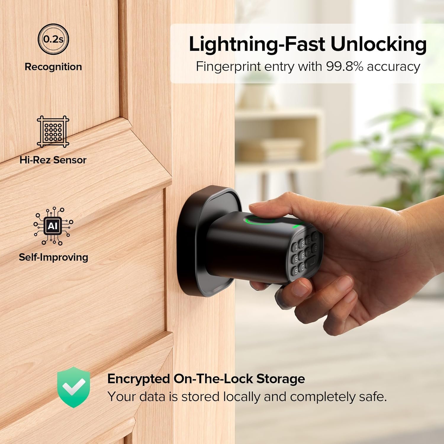 Unlock Your Door in a Flash. Advanced, Lightning-fast fingerprint recognition puts convenient and secure keyless entry at your fingertips. With its built-in intelligent learning capabilities, the more you scan your fingers, the faster you can unlock and the more accurately it recognizes your fingerprint ID