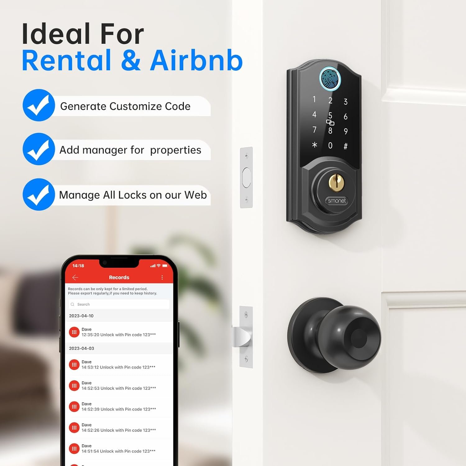 Ideal for Rental: Keyless deadbolt can add 1000+ key fobs and share electronic keys with friends.By authorising admin users, family members can also control the Bluetooth deadbolt lock through their individual app accounts.Ideal for rental, vatcation house