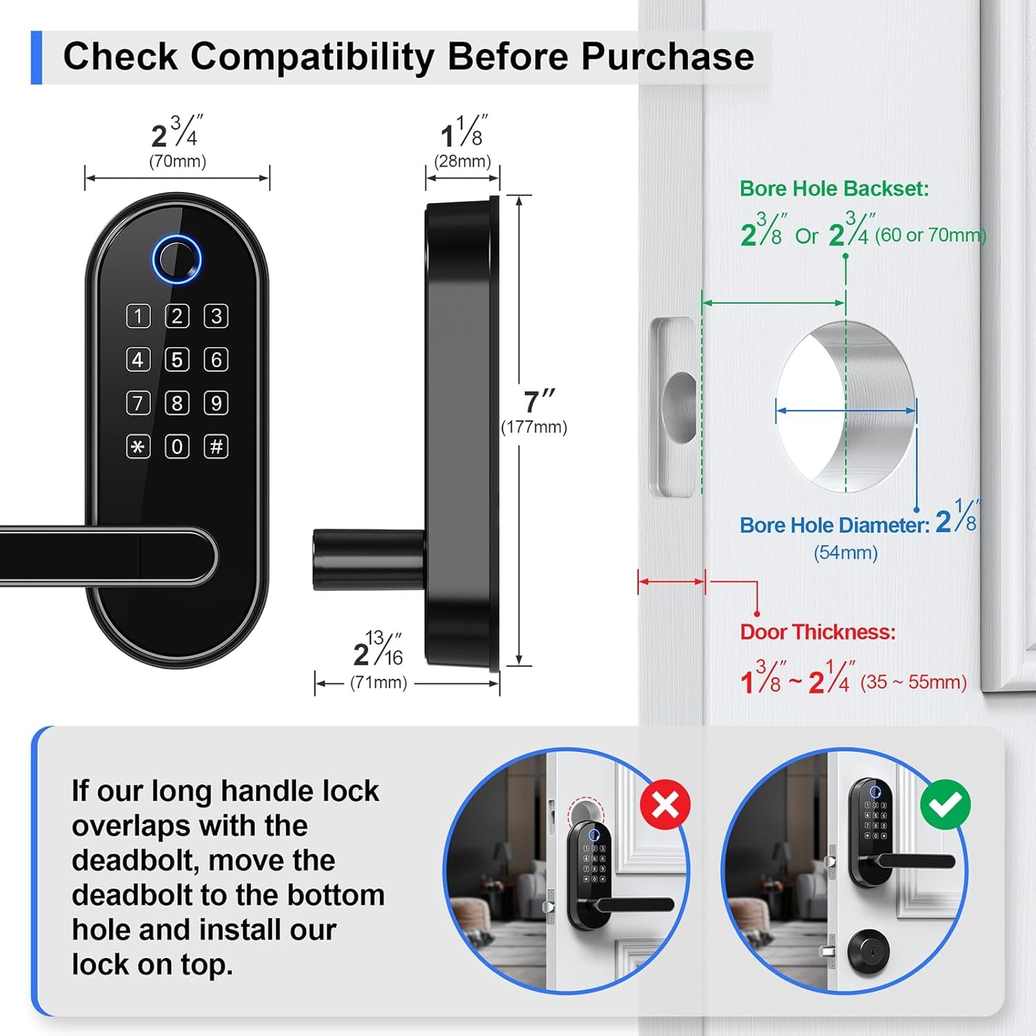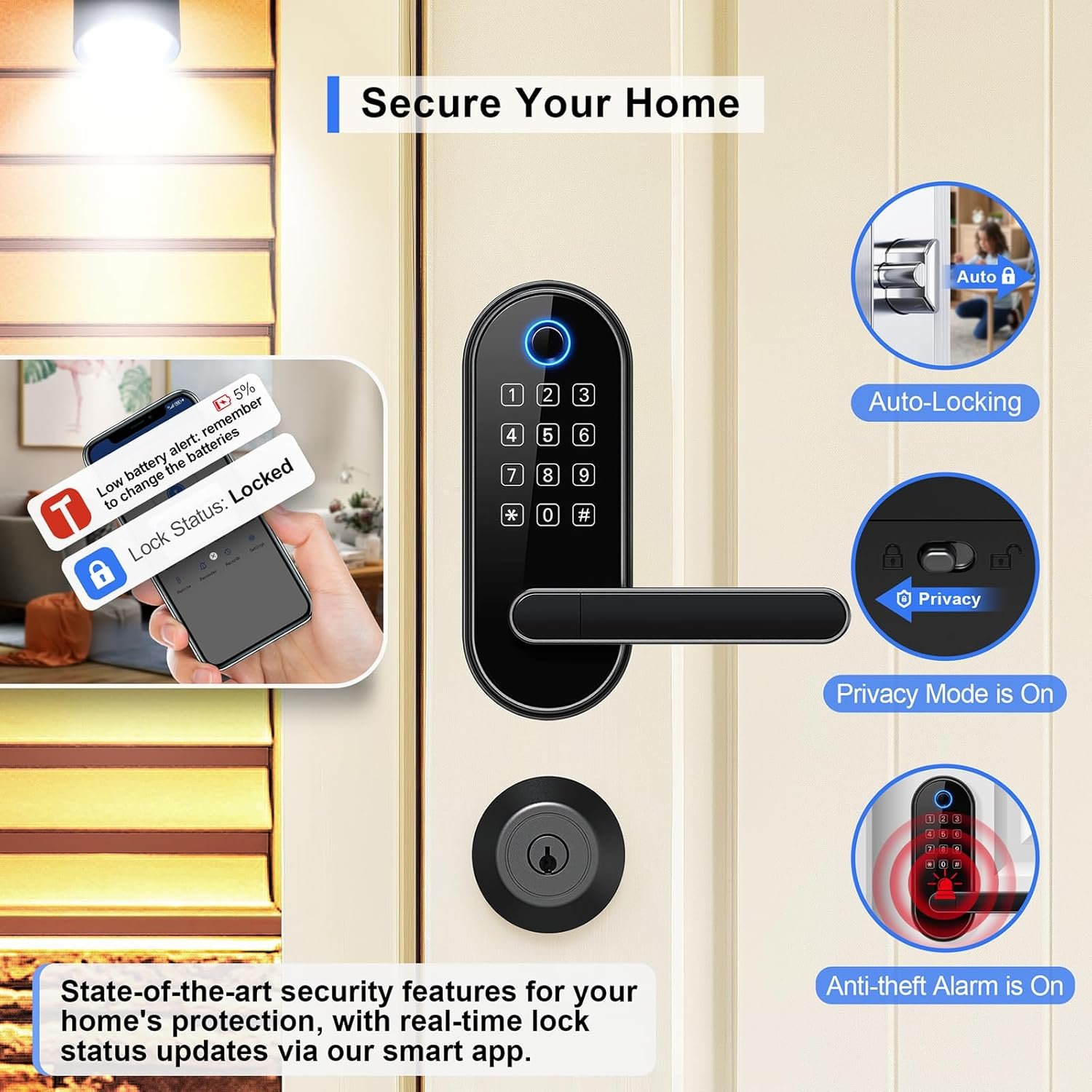 [Fingerprint Unlock – Family Friendly] Unlocking with a fingerprint takes just 0.3 seconds, offering quick access for family members; our 508 DPI high-resolution fingerprint sensor ensures up to 99.99% recognition rate; track all unlocking history using the smart app.