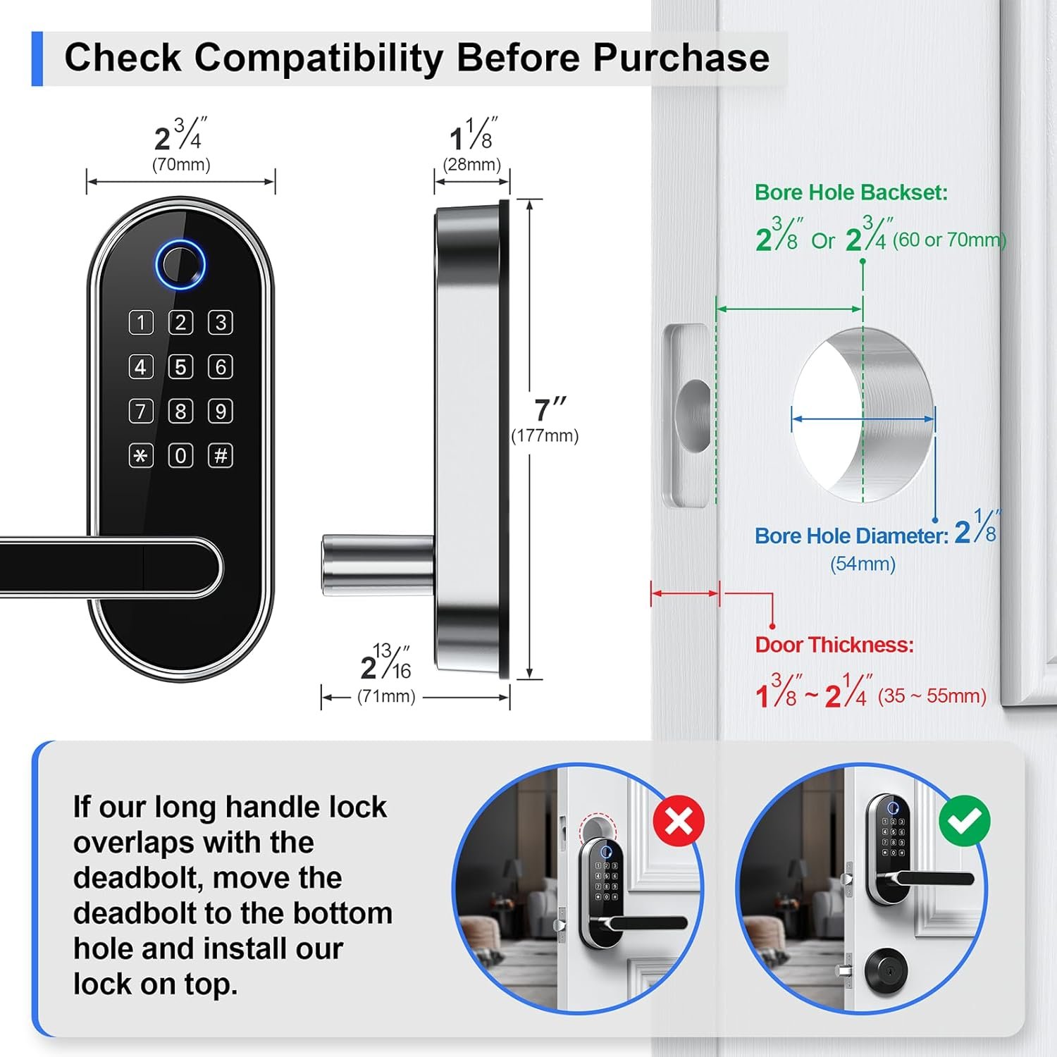 [Fingerprint Unlock – Family Friendly] Unlocking with a fingerprint takes just 0.3 seconds, offering quick access for family members; our 508 DPI high-resolution fingerprint sensor ensures up to 99.99% recognition rate; track all unlocking history using the smart app.