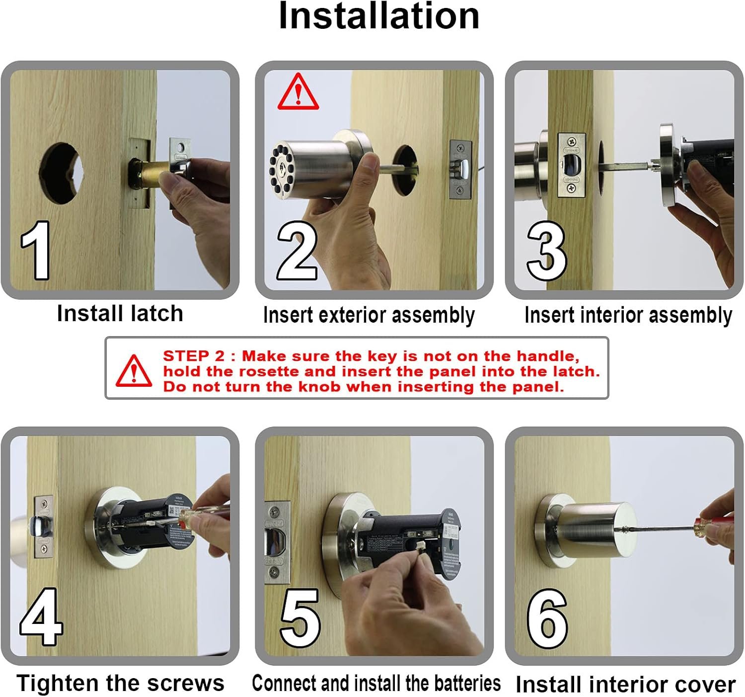 [SIMPLE]This password door handle set fits 1-3/8″ to 2-1/2″ thickness doors, with a 2-3/8″ or 2-3/4″ adjustable latch. Install it by yourself with just a screwdriver in minutes. Suitable for your bedroom , door entry or backdoor, etc.