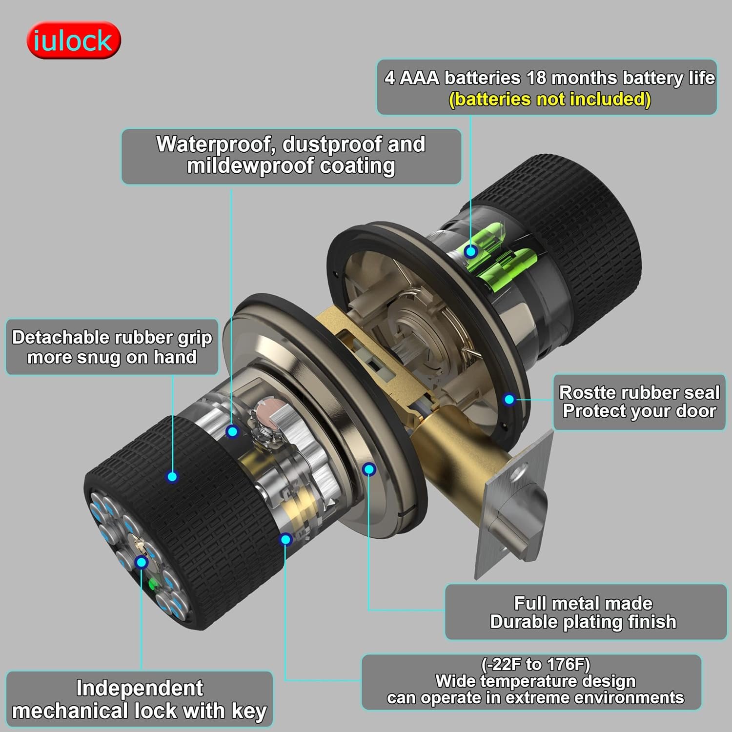IU-30 is the second generation keypad door knob lock from iulock. It has perfect size with a removable silicone gripper,more snug on handle. It can be adapted to more doors and can completely replace traditional mechanical doorknobs, mechanical door handle locks and door lever locks.
