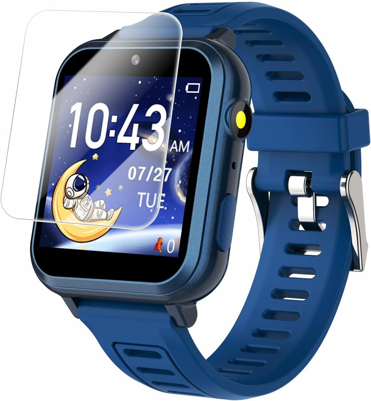 This is a smart watch specially designed for boys age 4-12. The kids watch is designed with 1.54 inch LCD color touch screen, all the functions are built-in the kids smartwatch, no need to connect phones or download APP, very easy to operate for kids.Our Cosjoype kids smart watch adds NEW Functions: 13 Habit Tracking Alarms, 100 Learning cards and 10 Audio Stories functions to make learning and play more fun for kids. These upgrades aim to make learning more enjoyable for developing healthy habits and knowledge. The diverse range of learn cards and stories aims to inspire curiosity and foster a love for learning in children, making the kids’ smartwatch an ideal companion for educational and recreational activities.Our Cosjoype kids smart watch add NEW Accessorie:Screen Protector * 1.