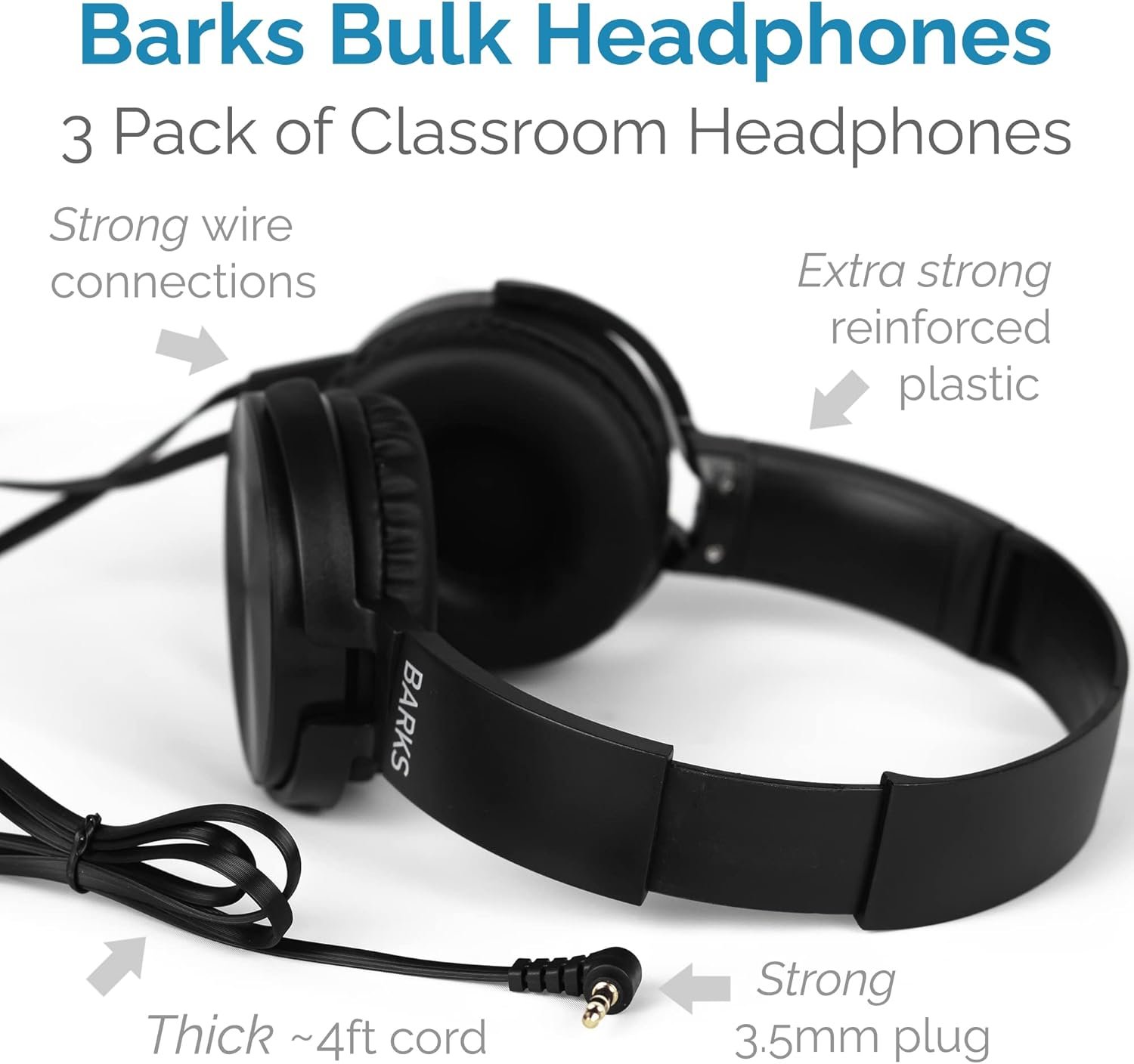 BULK HEADPHONES FOR CLASSROOM – Our 3 Pack of Barks Headphones for schools, students and kids help greatly enhance focus, learning and standardized testing experiences for all ages. True classroom must haves!