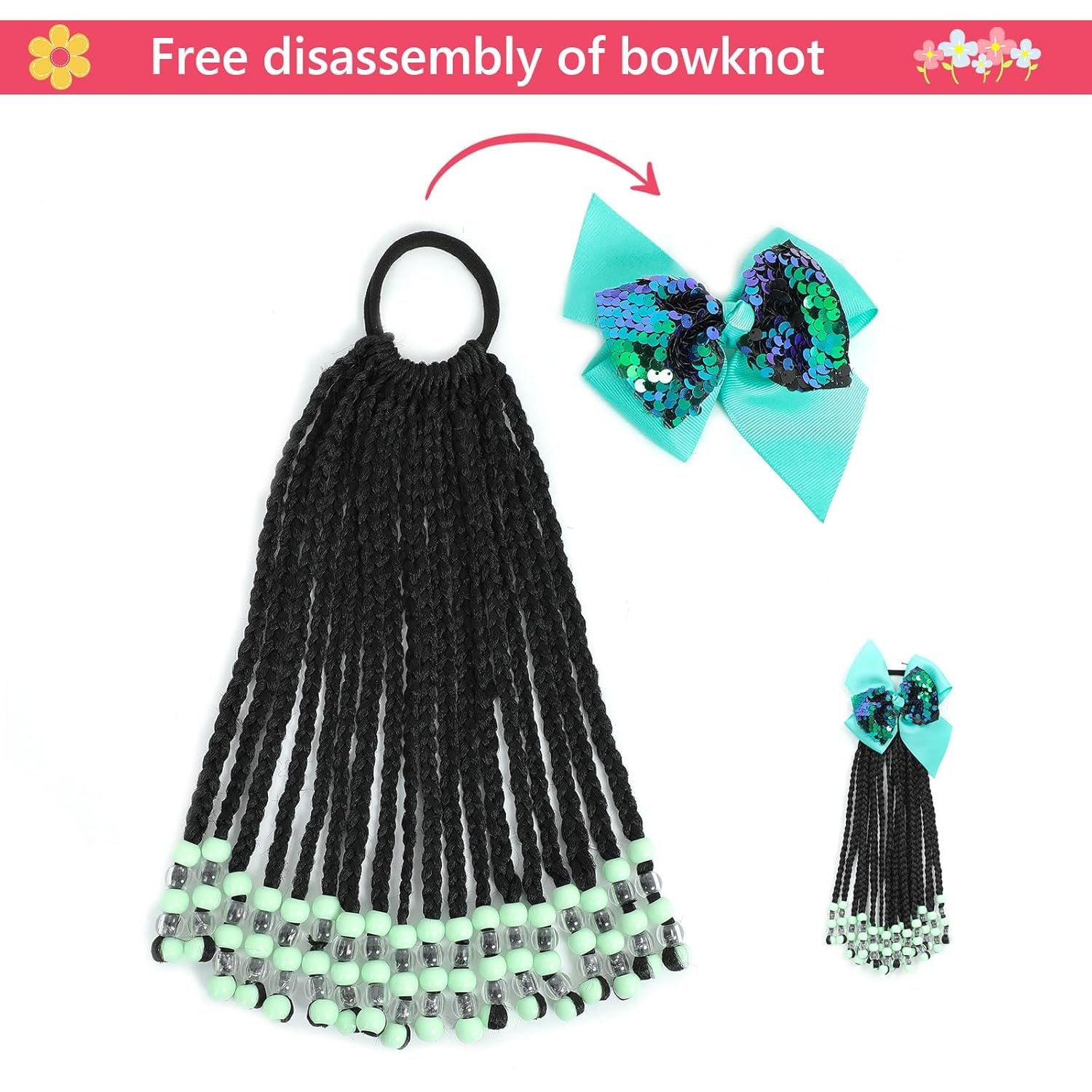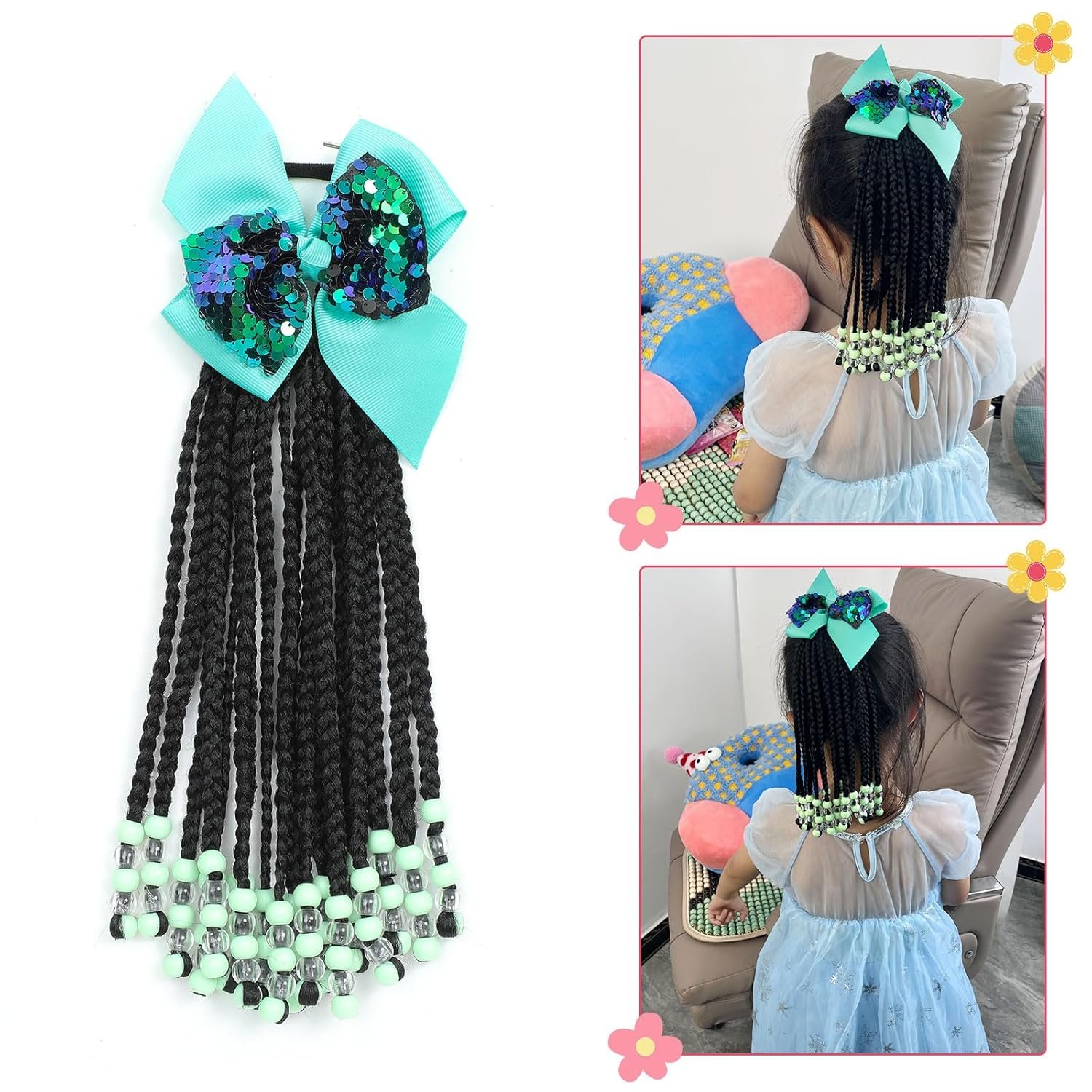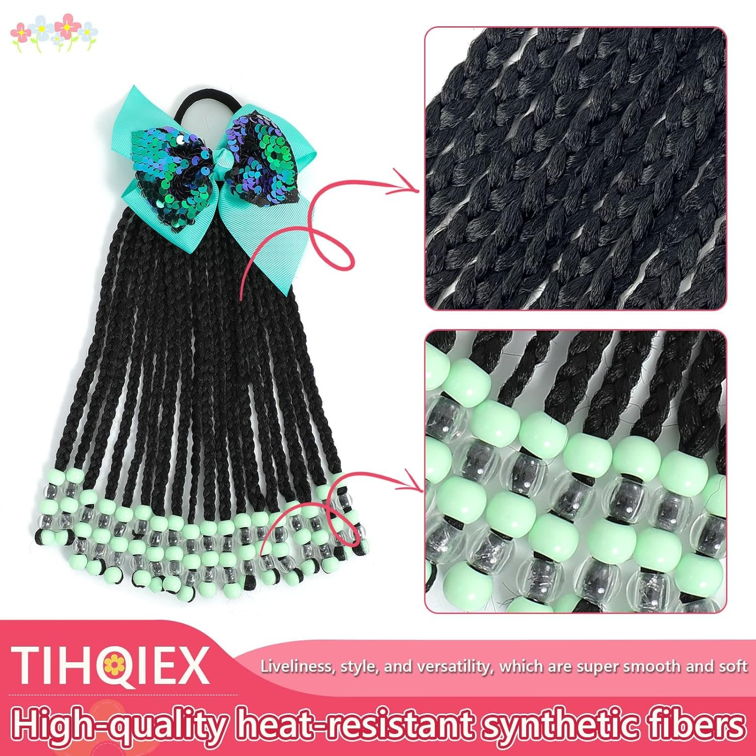 Kids Ponytail Extension High Quality: Made Of High Quality Synthetic Fiber And Soft Elastic Band, The Hair Braids Is Super Silky, Soft And Lightweight, No Tangle, No Shedding. Each Ponytail Has 18 Individual Braids, Each Containing Vibrant Beads That Match The Bow Color.
