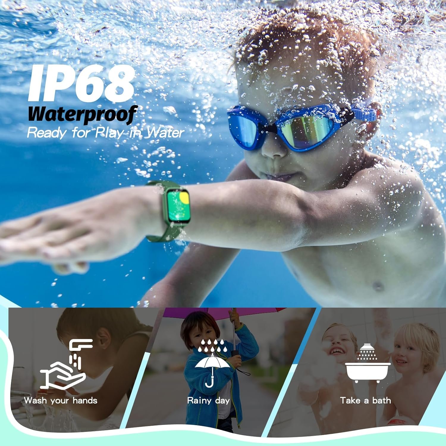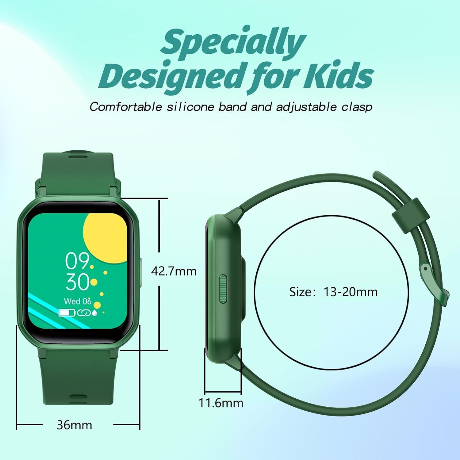 24 HOURS NON-STOP HEALTH TRACKING :The smart watch for kids uses high-performance optical sensors to act as a fitness tracker in a timely and accurate manner, recording your child’s daily walking steps, distance and calories, continuously monitoring their heart rate and sleep quality. Then show detailed data to help them build up a good lifestyle