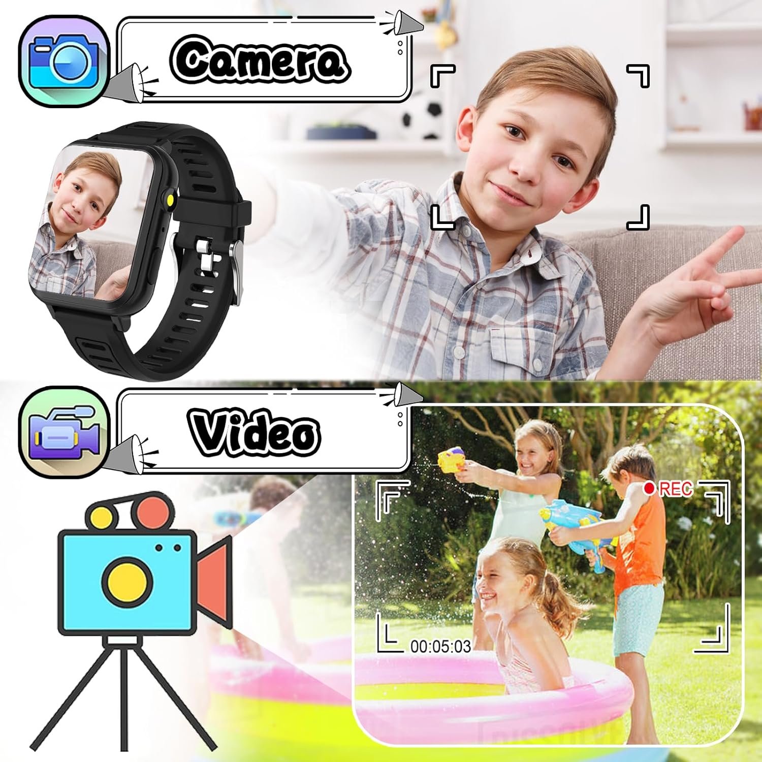 Friendly Design: The kids watch is equipped with soft watchband and 1.5-inch child-friendly touchscreen design ensure comfort during use and enhance operational convenience. Its sturdy and durable structure fully accommodates children’s active nature, accompanying them safely through every stage of growth