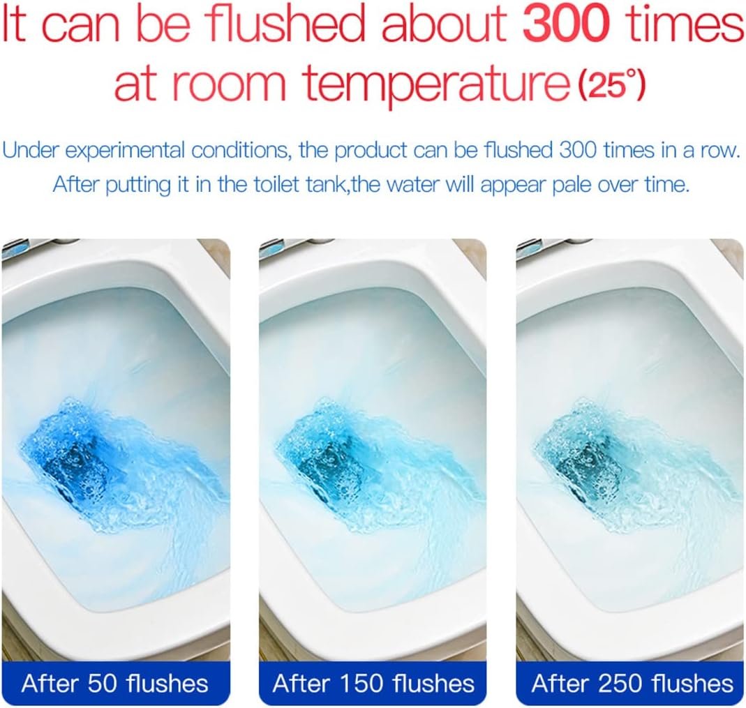 LONG-LASTING DESIGN: Designed with a slow release technique,each toilet tablet can continuously clean the toilet for up to 15 days with 20 flushes a day at room temperature(25゜).Water quality and the number of flushes in a day determine the exact days. Please note:each toilet tablet’s lifetime may vary