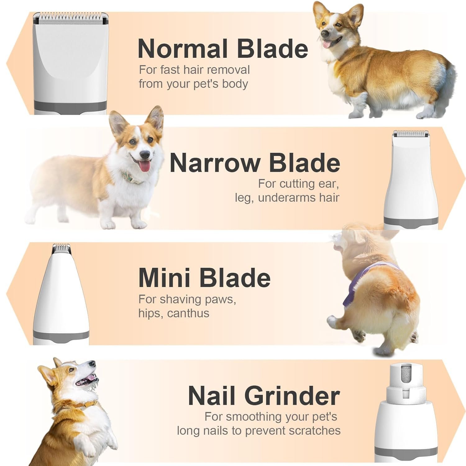 【All-in-One】Our cat grooming supplies come with 4 clipper combs(10mm/6mm/3mm/1mm) cutting lengths. 4 attachment heads (normal/detail/mini/nail grinder) can be perfectly adapted to all the grooming of small &medium pet! Ideal gift preference for pet lovers!