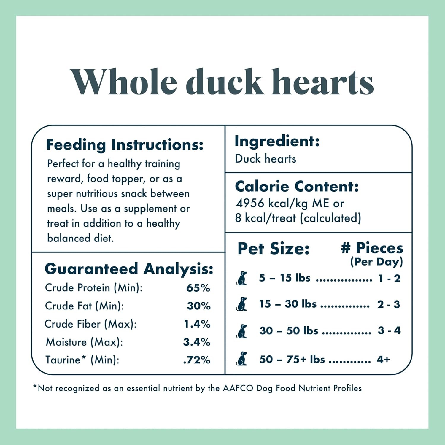 Sourced Responsibly – Our USA-sourced whole duck hearts are hand-crafted in small batches; these freeze dried duck hearts are also carefully packaged for a premium treat
