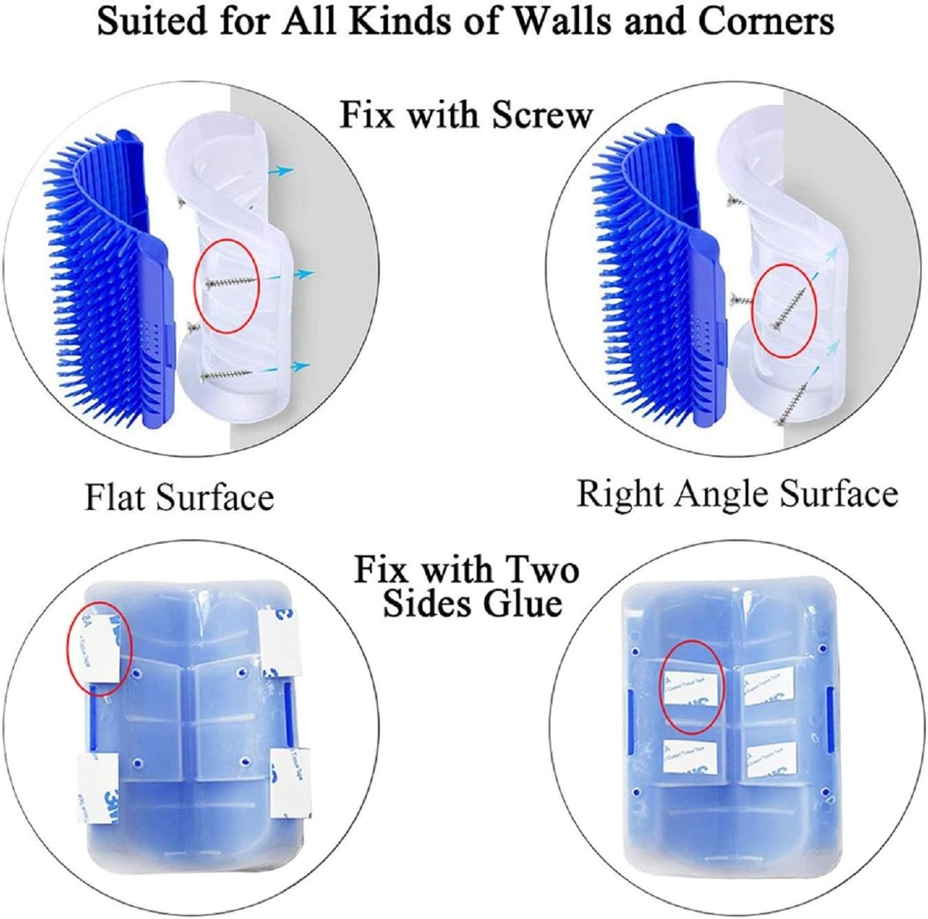 【Safe for Cats】Our cat corner scratcher is made of eco-friendly plastic base and softer plastic bristles, ensuring gentle massaging and grooming without painful removal of fur or scratching the cat’s skin. The soft bristles will never fall off, please feel free to use! (Please don’t mind it too hard or stiff, it is safe for cat grooming, except for hairless cats.)